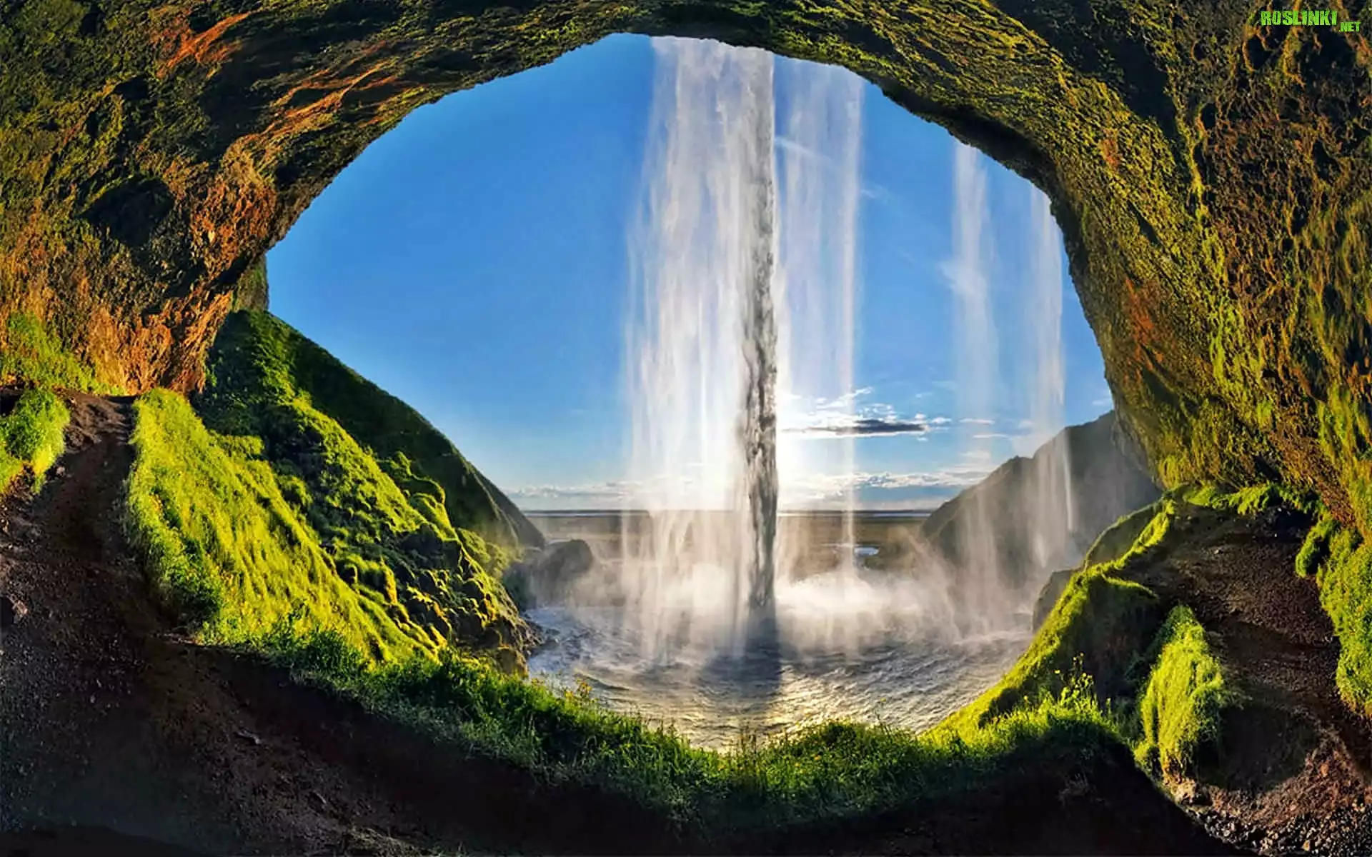 Rośliny: Wodospad, Seljalandsfoss, Skały, Jaskinia, Mchy, Światło, Cień