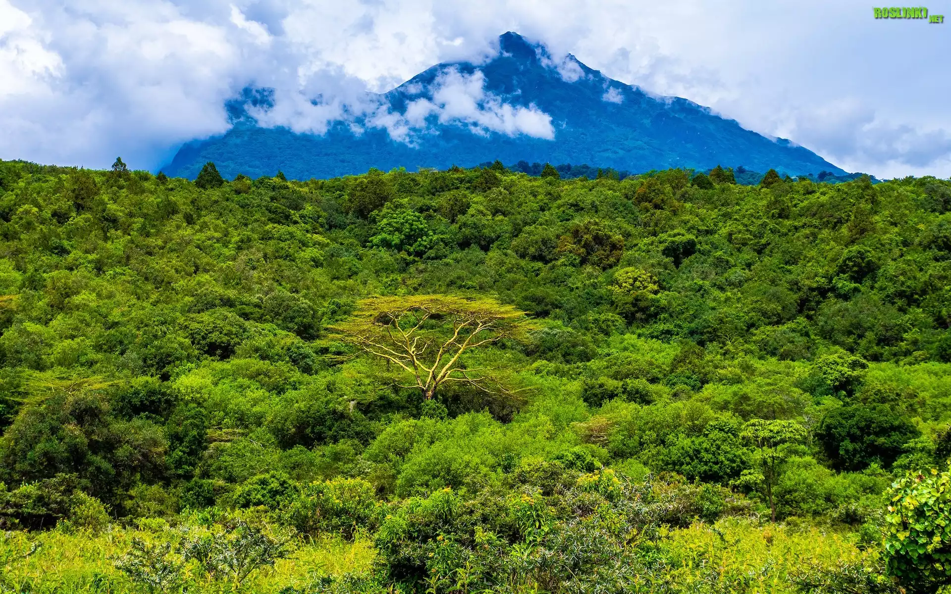 Rośliny: Afryka, Tanzania, Park Narodowy Aruszy, Góra, Roślinność, Drzewa, Chmury