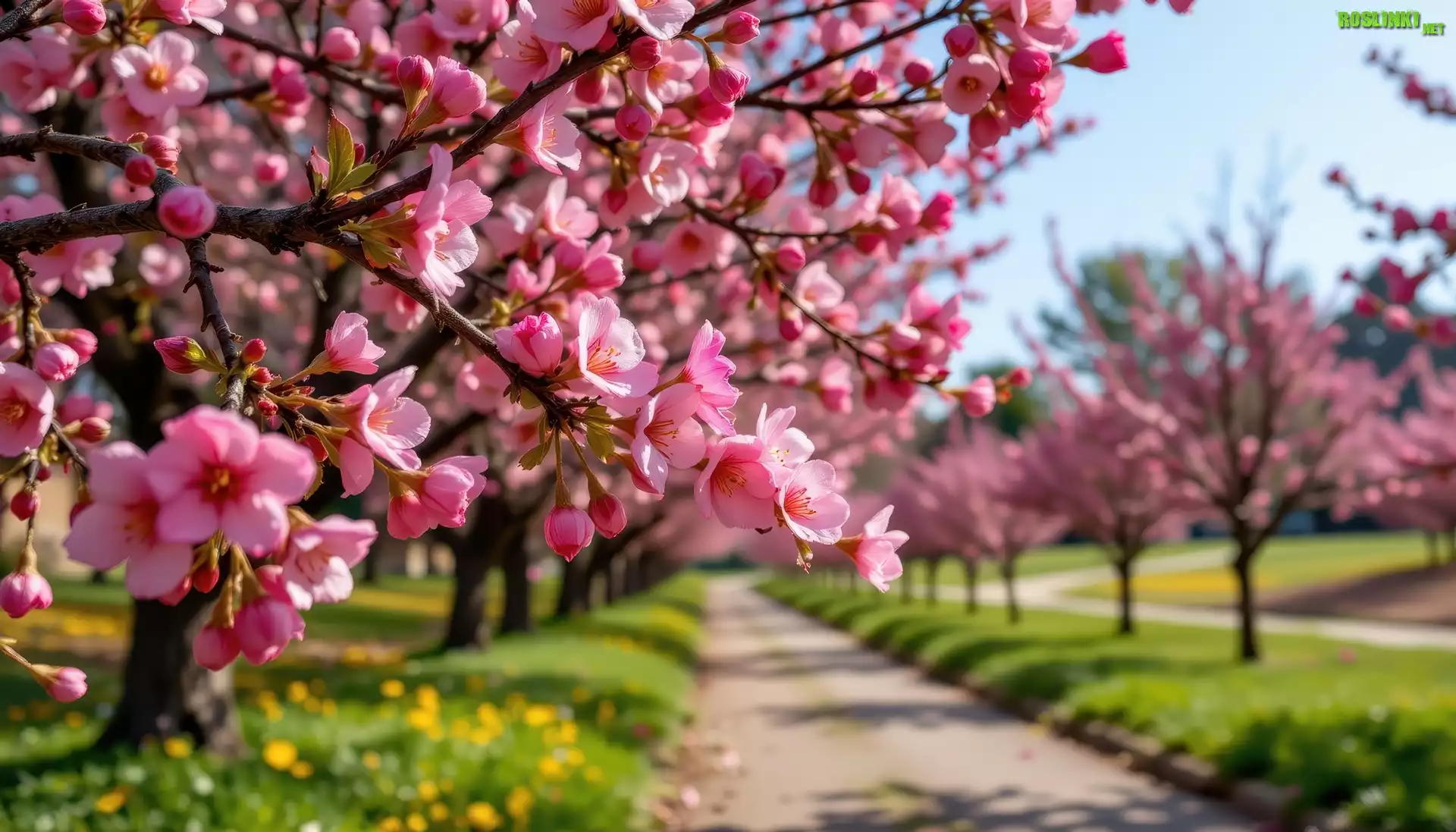 Rośliny: Kwiaty, Różowe, Gałąź, Aleja, Drzewo owocowe, Grafika AI