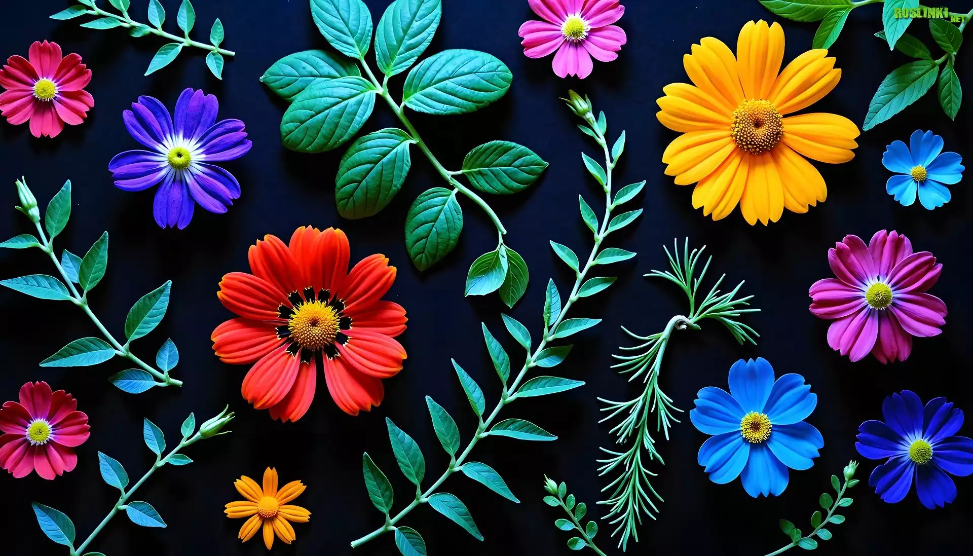 Rośliny: Liście, Kolorowe, Kwiaty, AI
