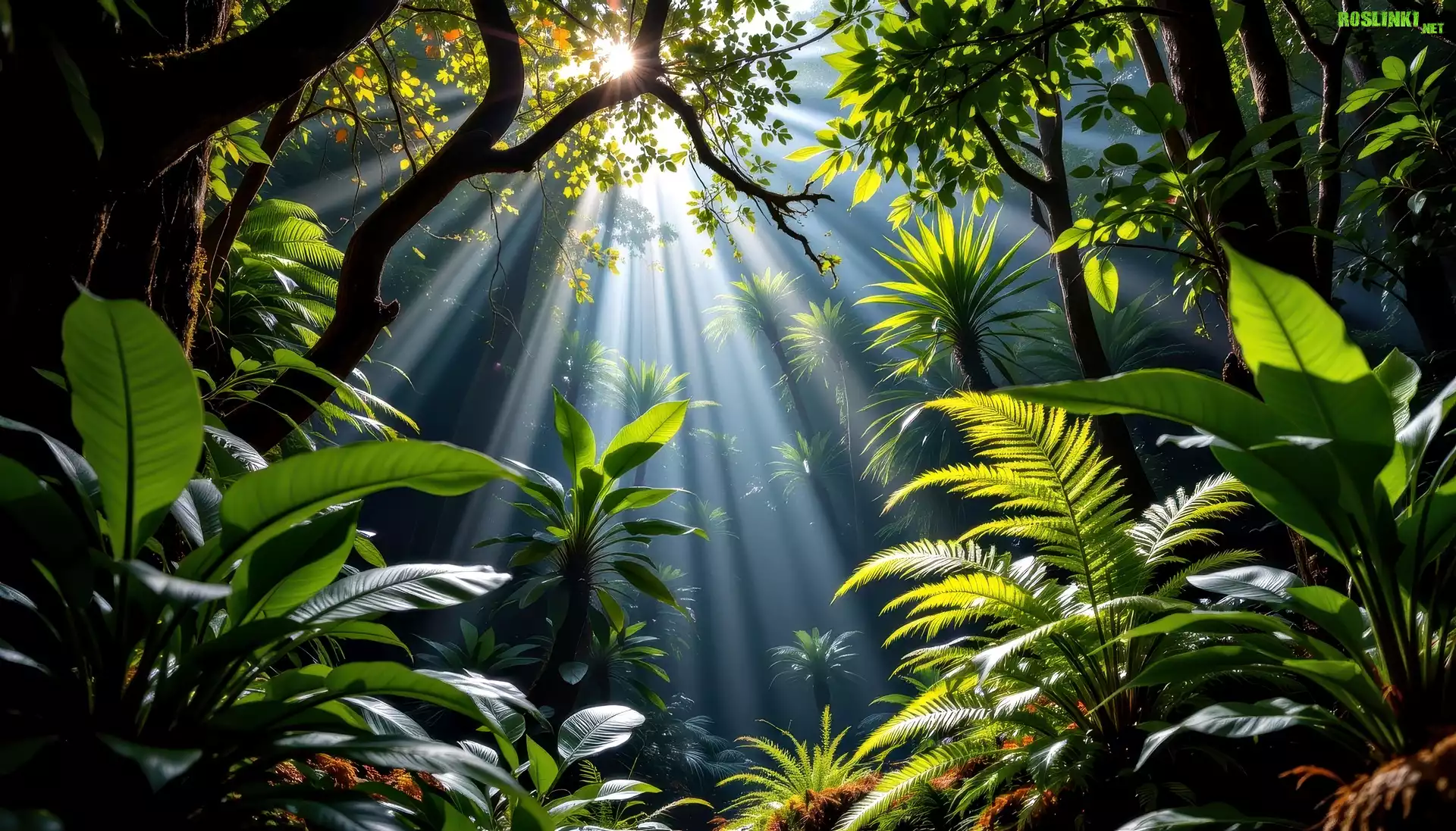 Rośliny: Las, Roślinność, Liście, Drzewa, Przebijające światło, Grafika AI