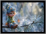Rośliny: Skrzat, Kolorowe, Ubranko, Gałązka, Sosna, Szron, Grafika AI