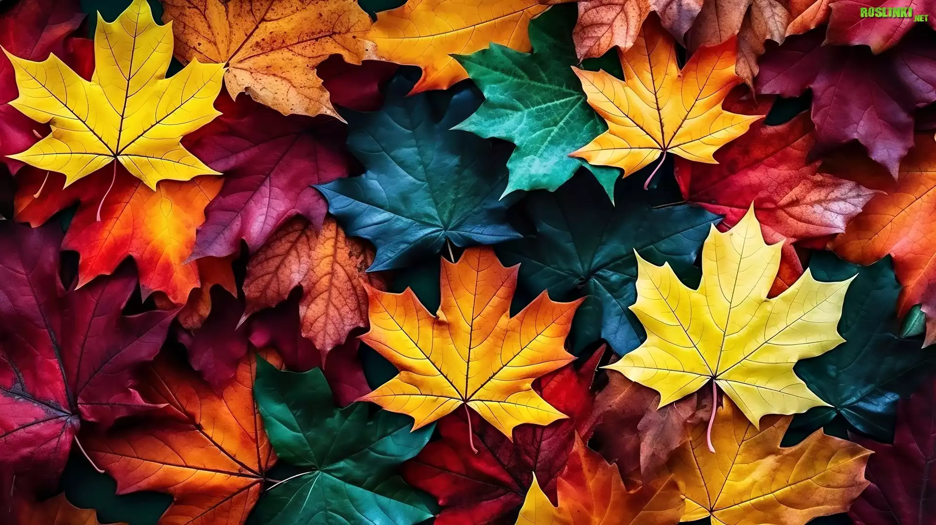 Rośliny: Klon, Kolorowe, Zielone, Żółte, Pomarańczowe, Liście, Grafika AI