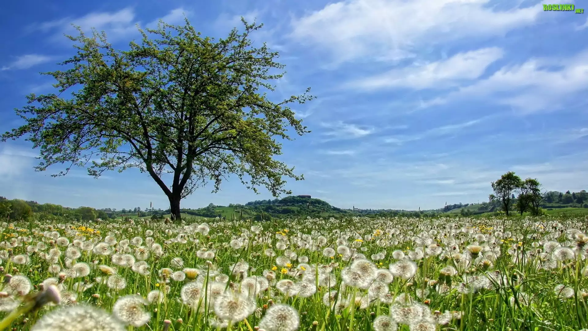 Rośliny: Łąka, Trawa, Mniszek, Mlecz, Drzewo, Niebo