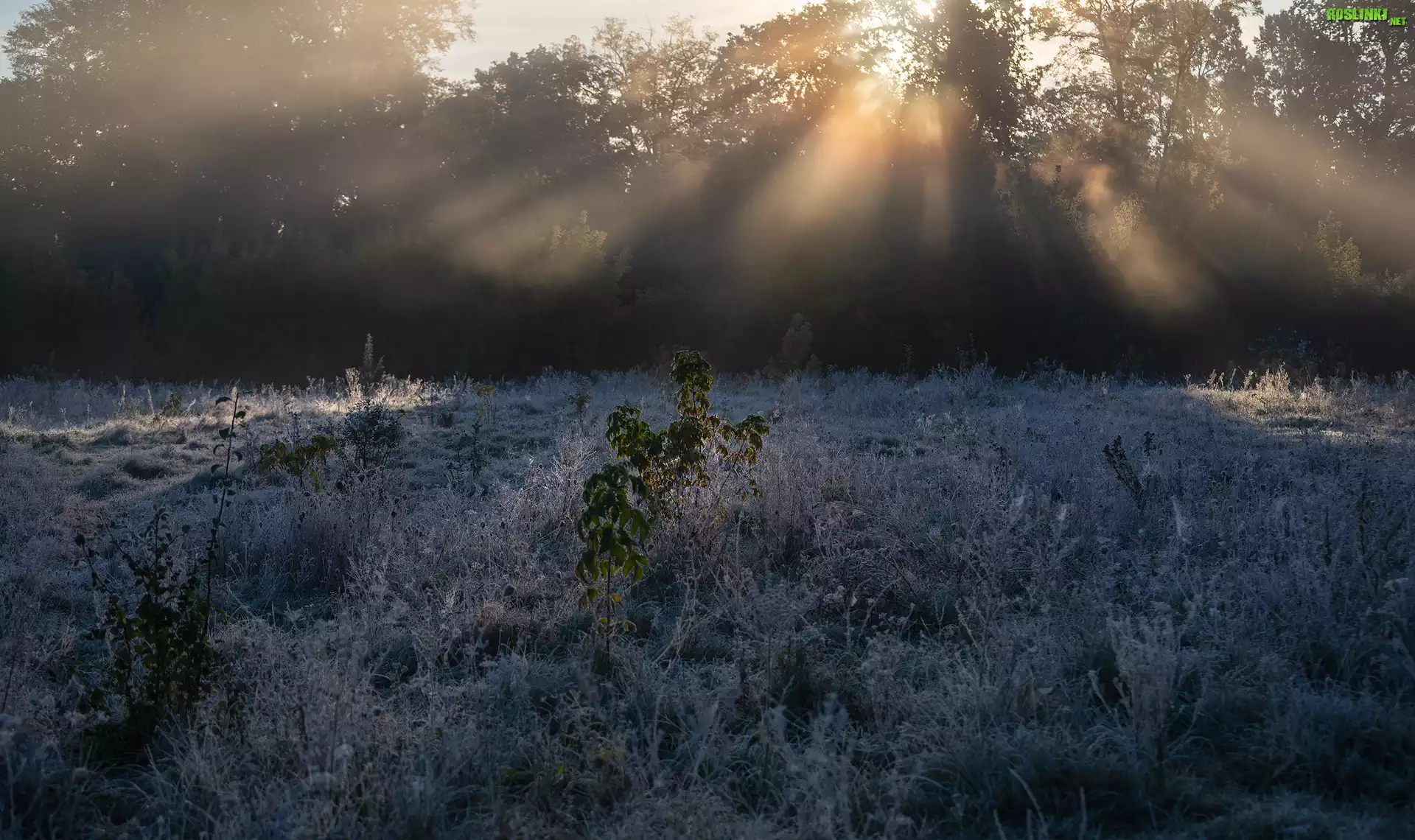 Rośliny: Łąka, Drzewa, Rośliny, Szron, Przebijające światło