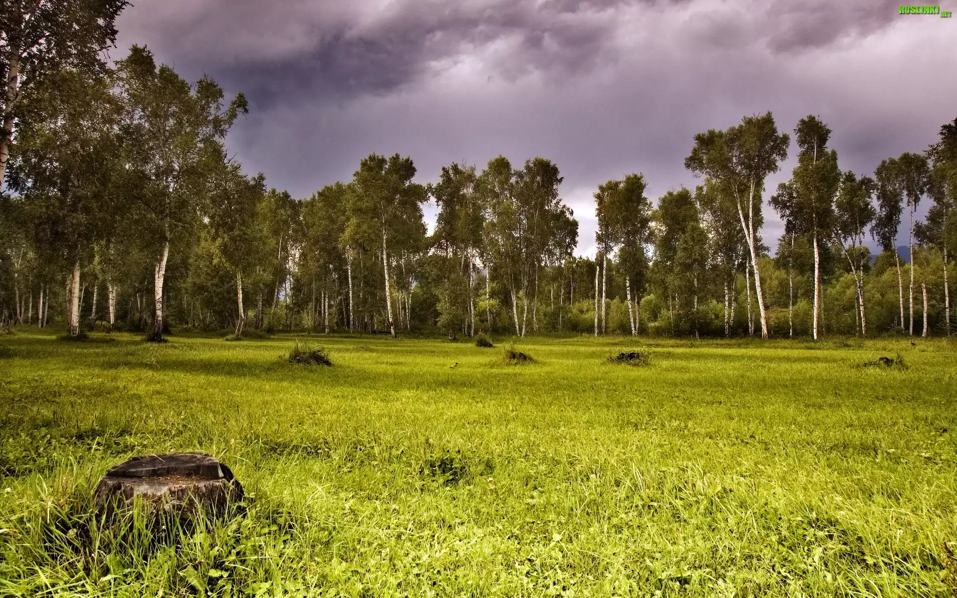 Rośliny: Drzewa, Łąka, Chmury