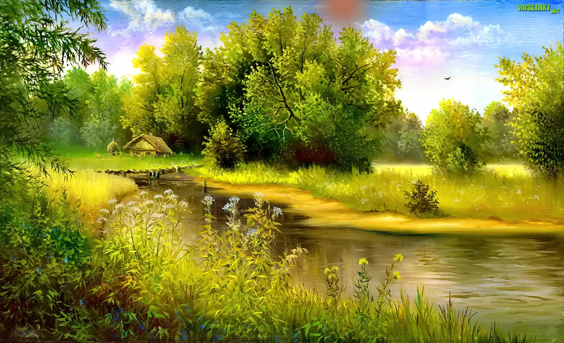 Rzeka, Łąka, Drzewa
