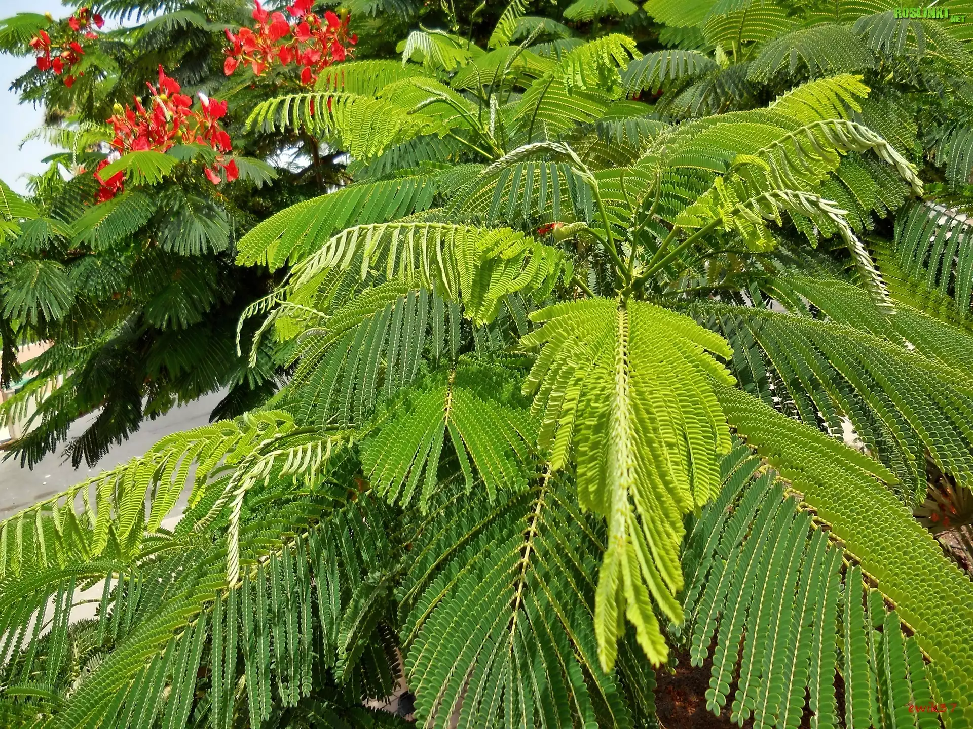 Rośliny: Akacja, Zielone, Liście, Czerwone, Kwiaty