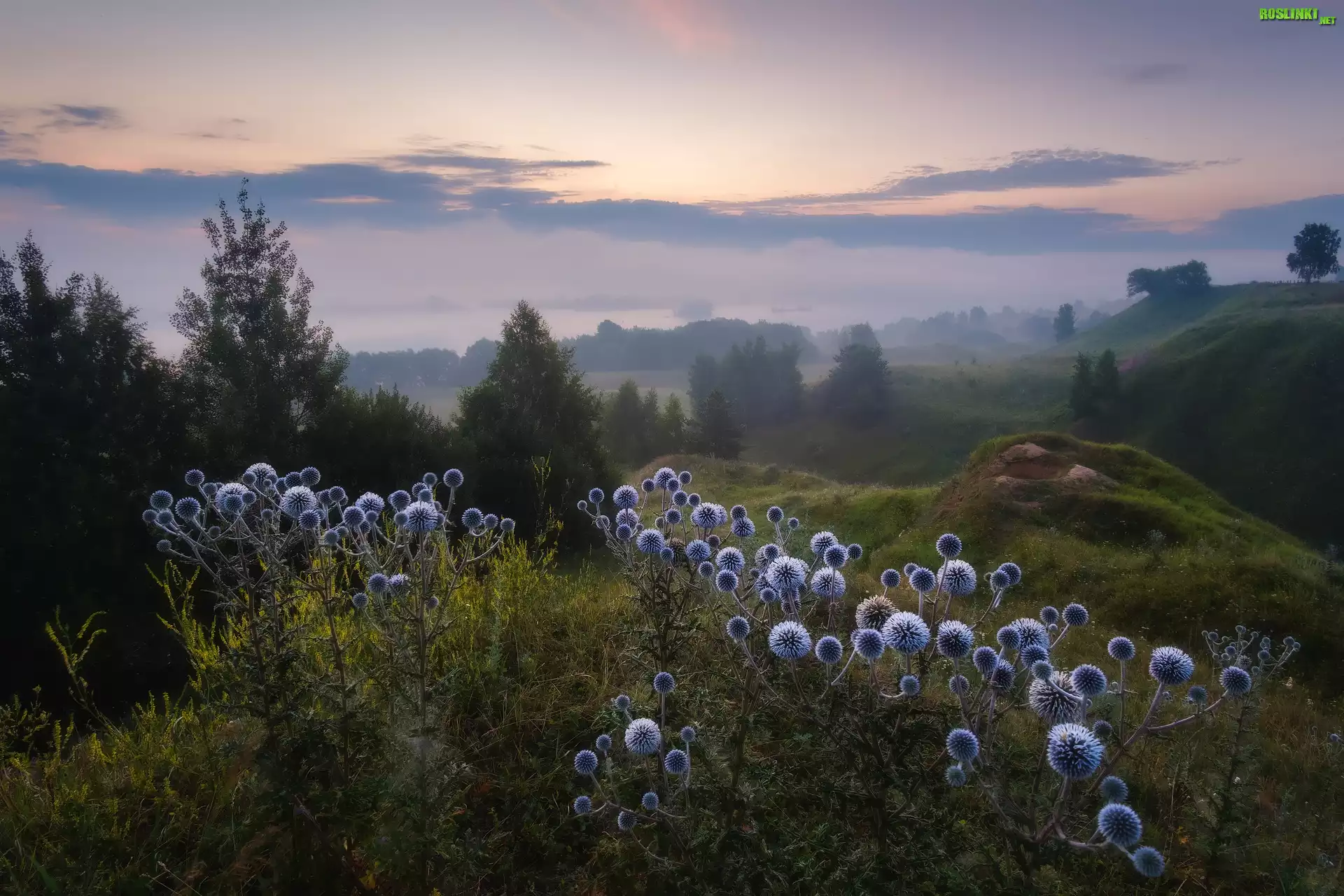 Rośliny: Łąki, Drzewa, Wzgórza, Rośliny, Przegorzan kulisty