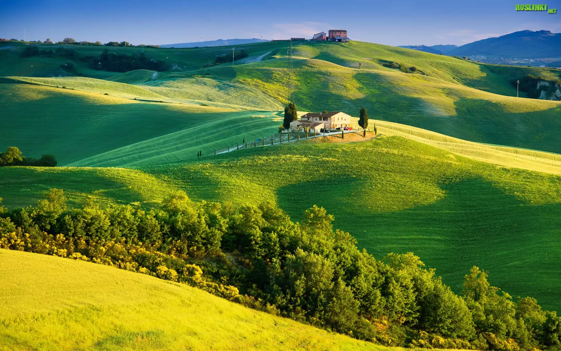 Łąki, Domy, Drzewa, Góry, Toksania, Wieś, Włochy