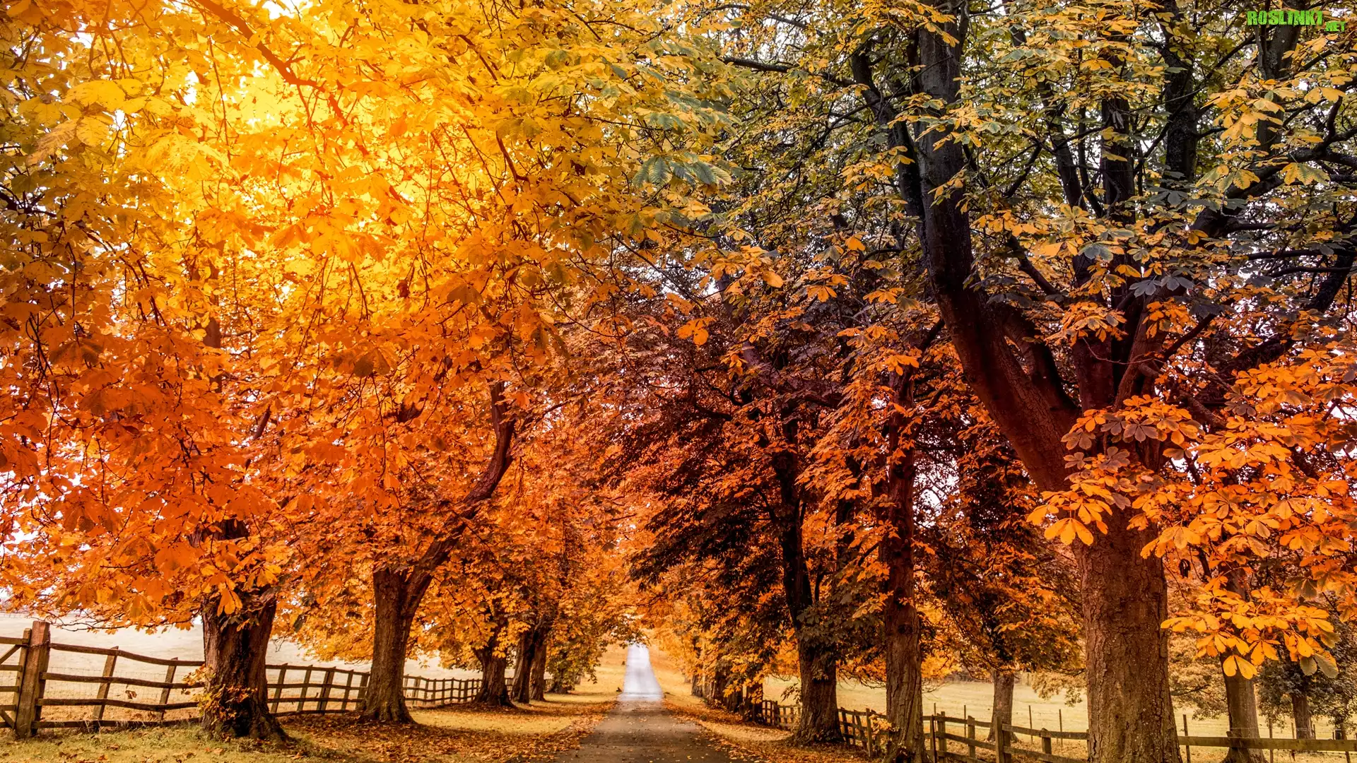 Rośliny: Aleja, Drzewa, Ogrodzenie, Jesień