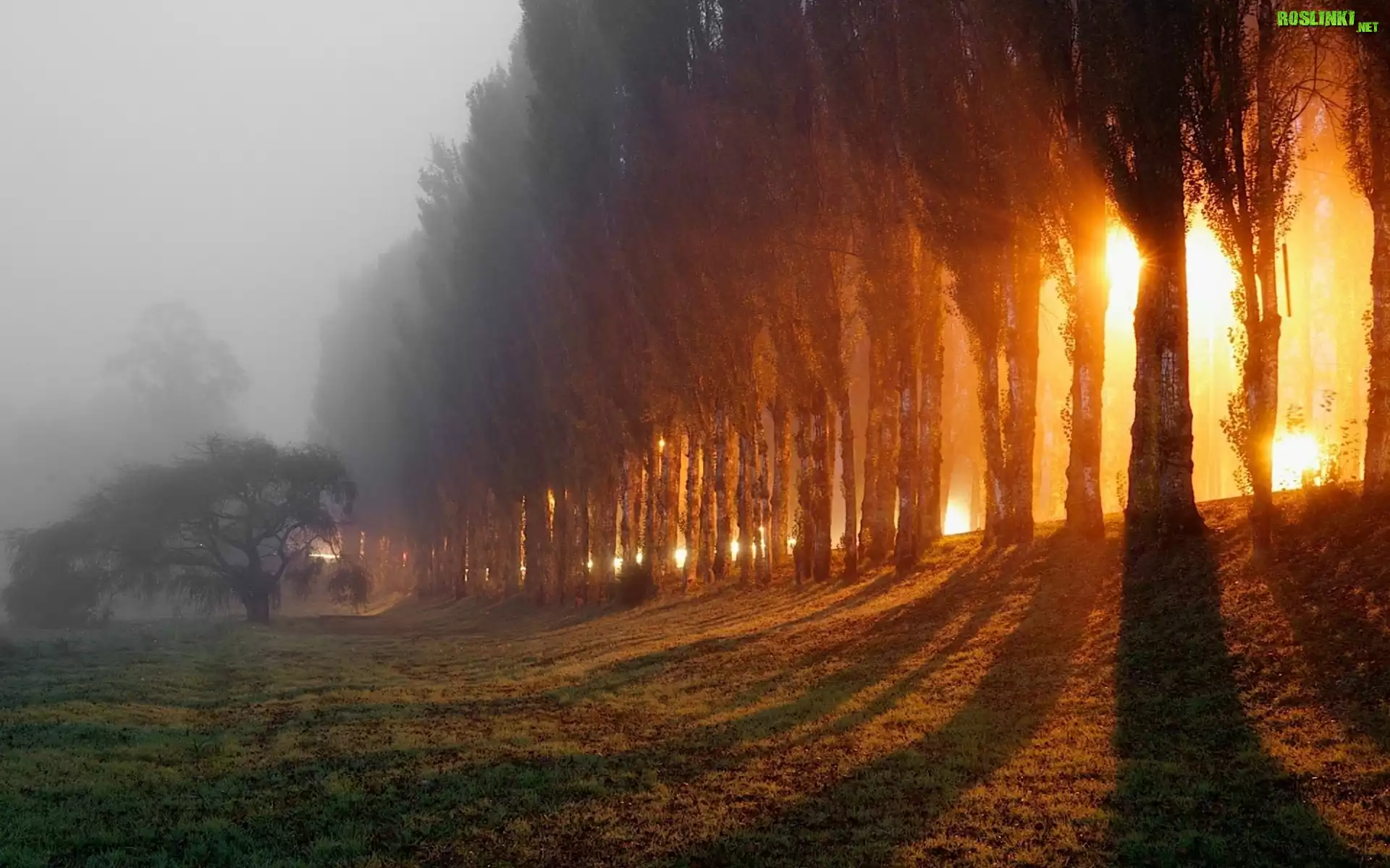 Rośliny: Aleja, Topoli, Mgła, Przebijające, Światło