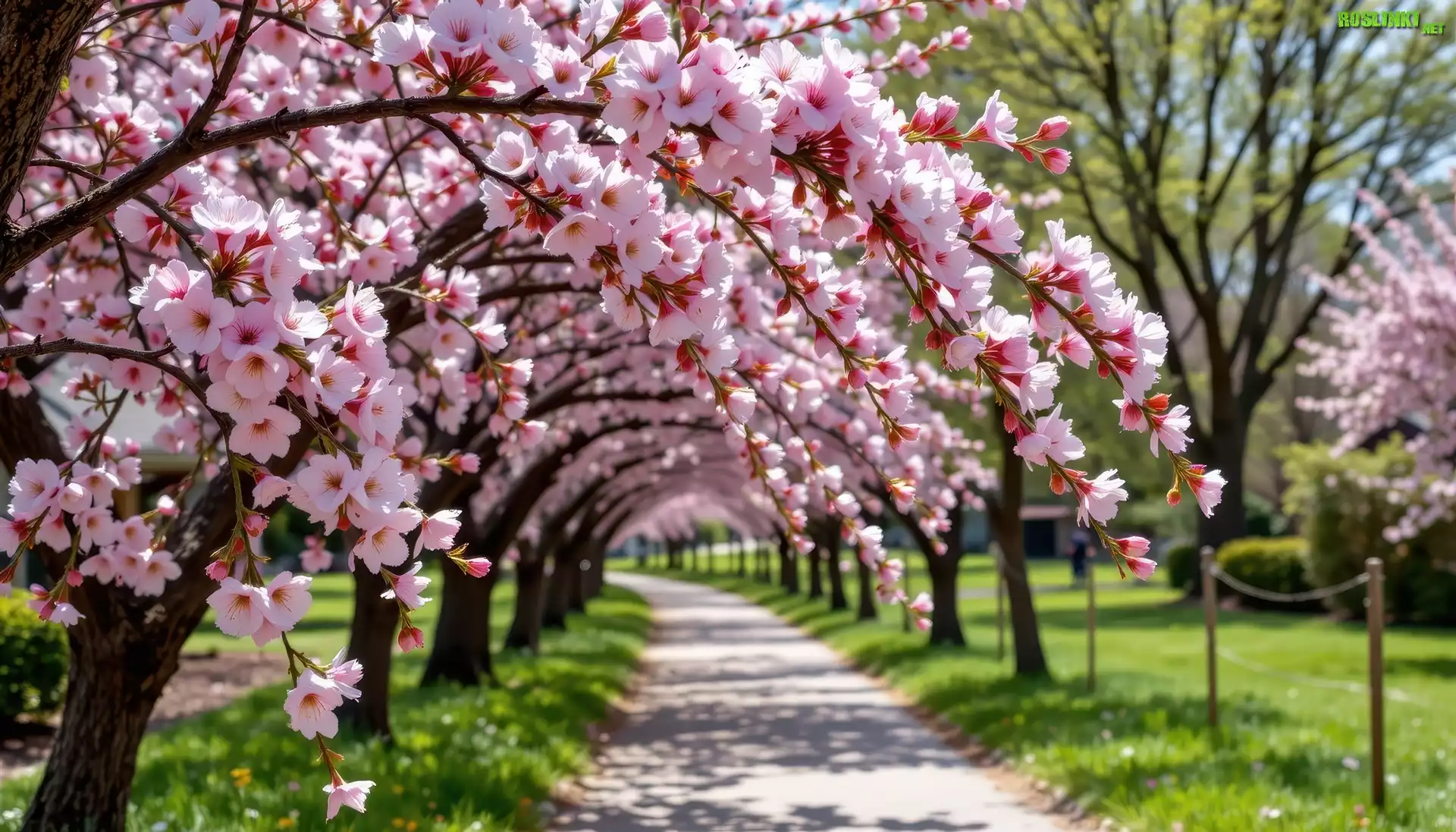 Rośliny: Kwitnące, Drzewo owocowe, Alejka, Wiosna, Grafika AI