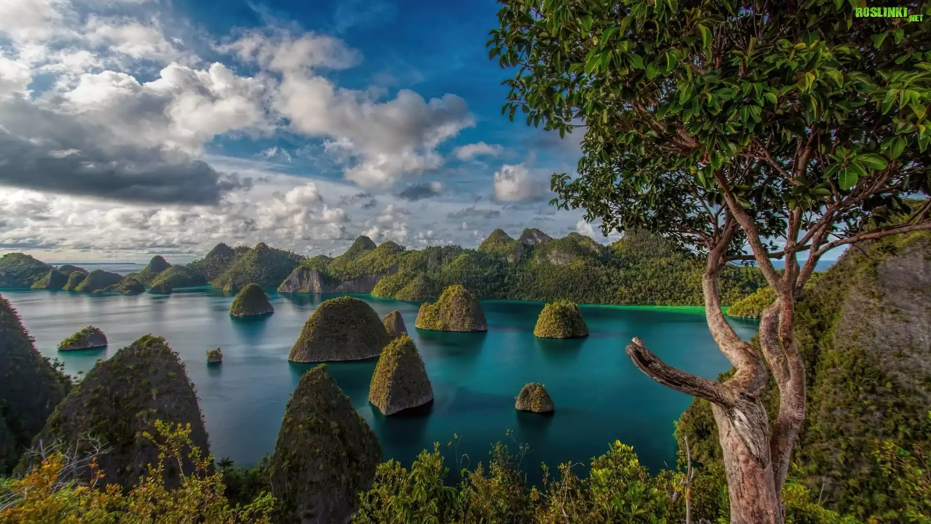 Rośliny: Indonezja, Wyspy, Raja Ampat, Drzewa, Morze, Chmury
