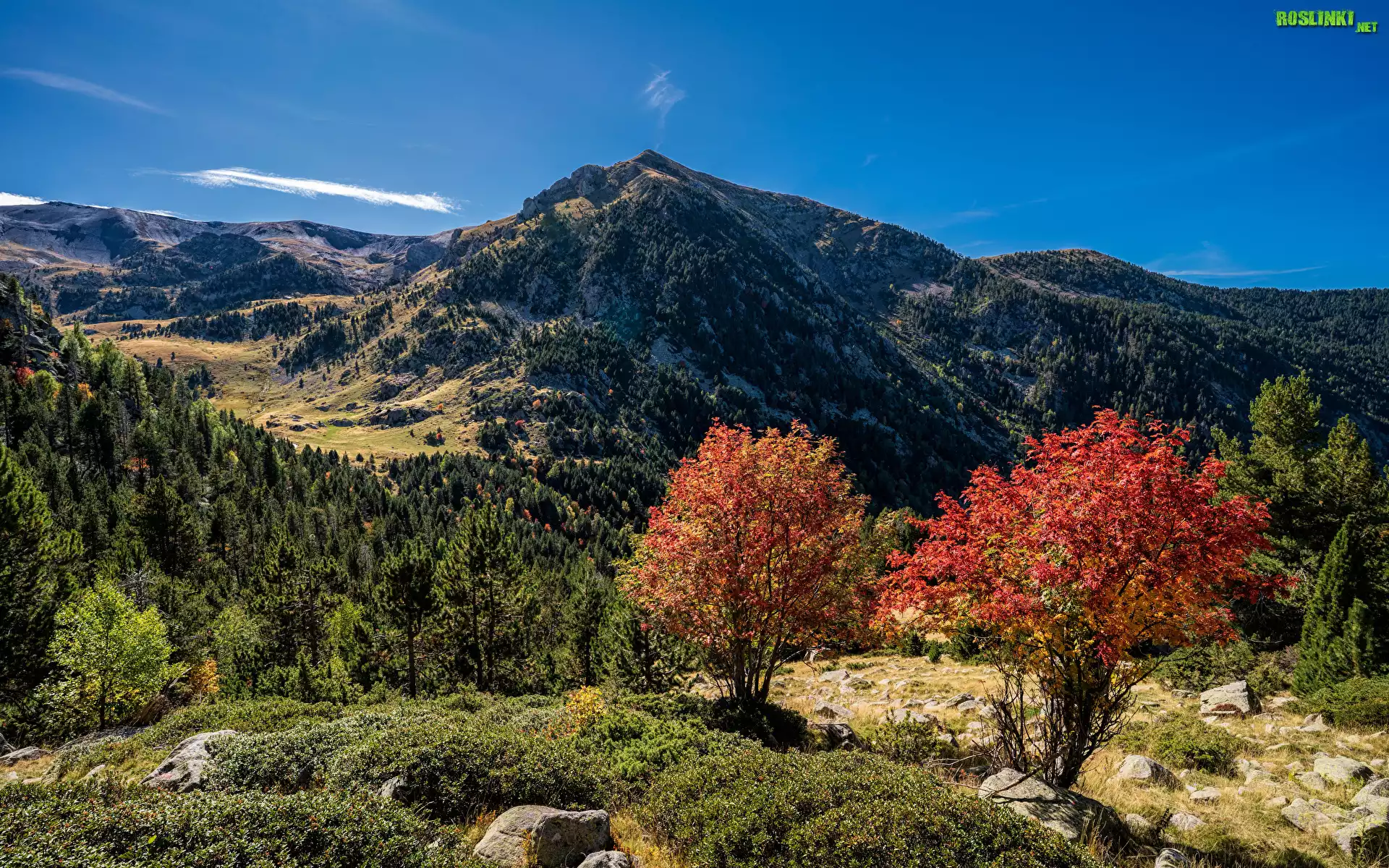 Rośliny: Góry, Pireneje, Jesień, Lasy, Kolorowe, Drzewa, Krzewy, Escaldes-Engordany, Andora