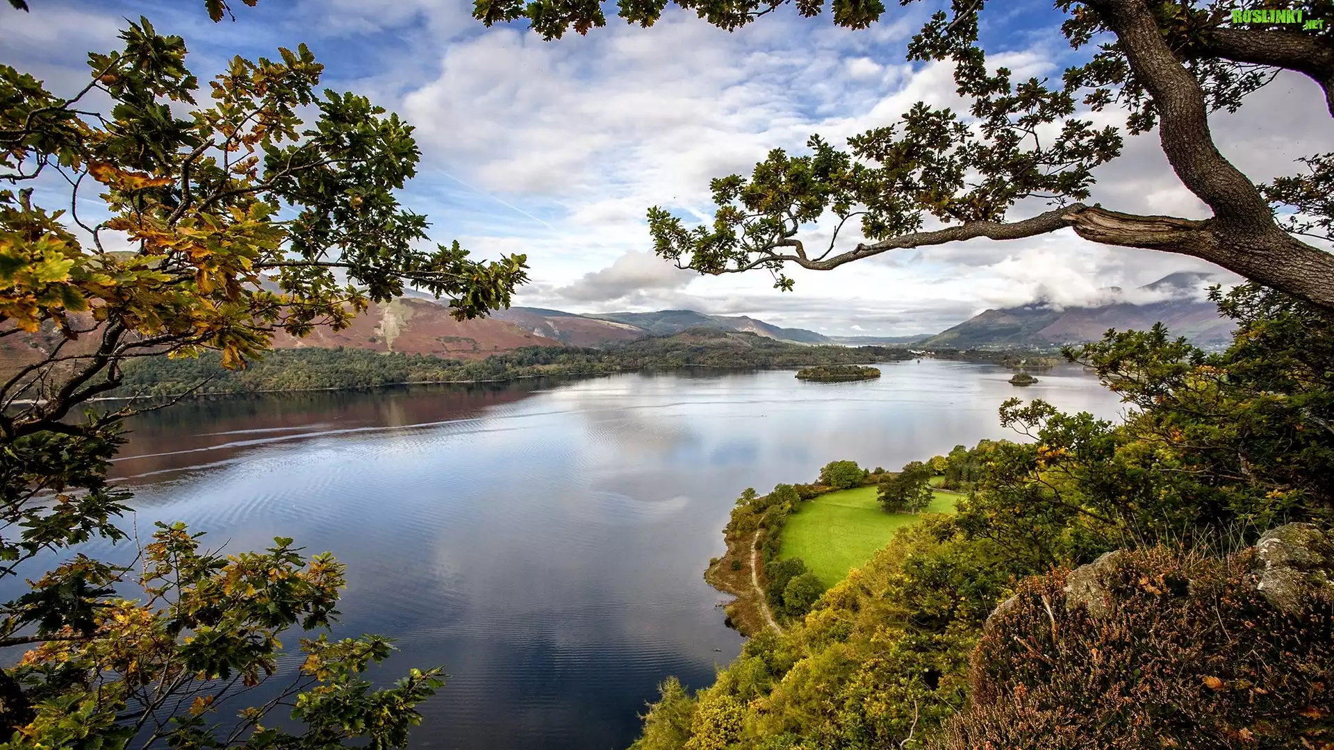 Rośliny: Anglia, Jezioro Derwentwater, Drzewa, Góry