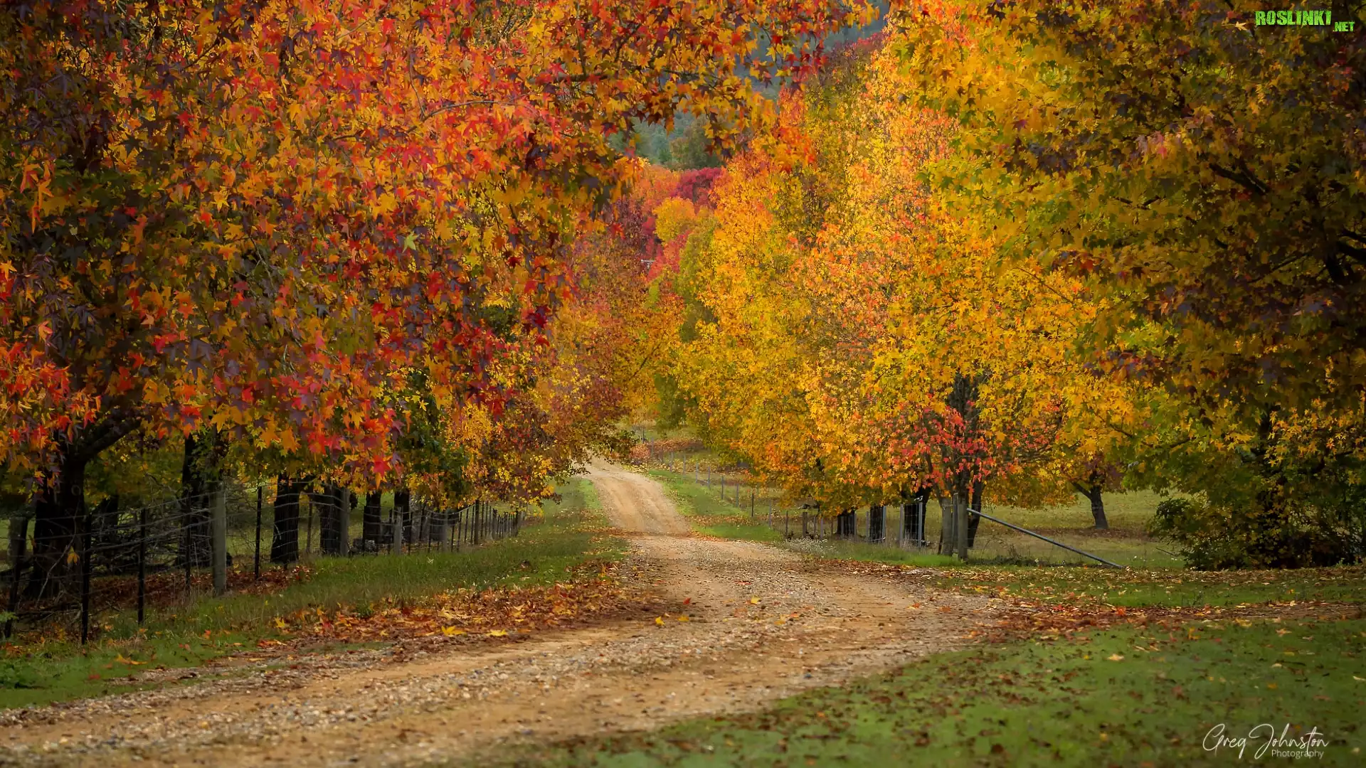 Rośliny: Jesień, Kolorowe, Drzewa, Droga, Miejscowość, Wandiligong, Stan Wictoria, Australia