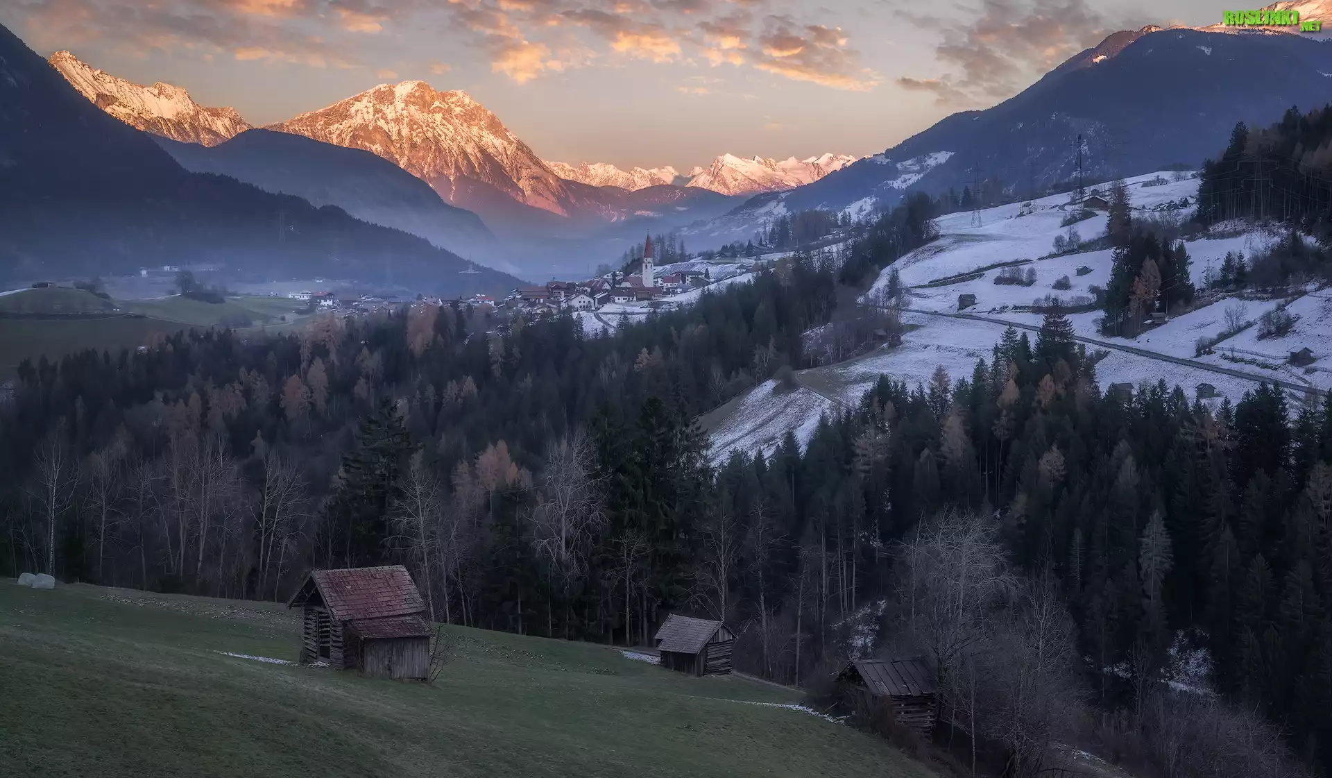 Rośliny: Góry, Alpy, Drzewa, Domy, Śnieg, Gmina Arzl im Pitztal, Austria