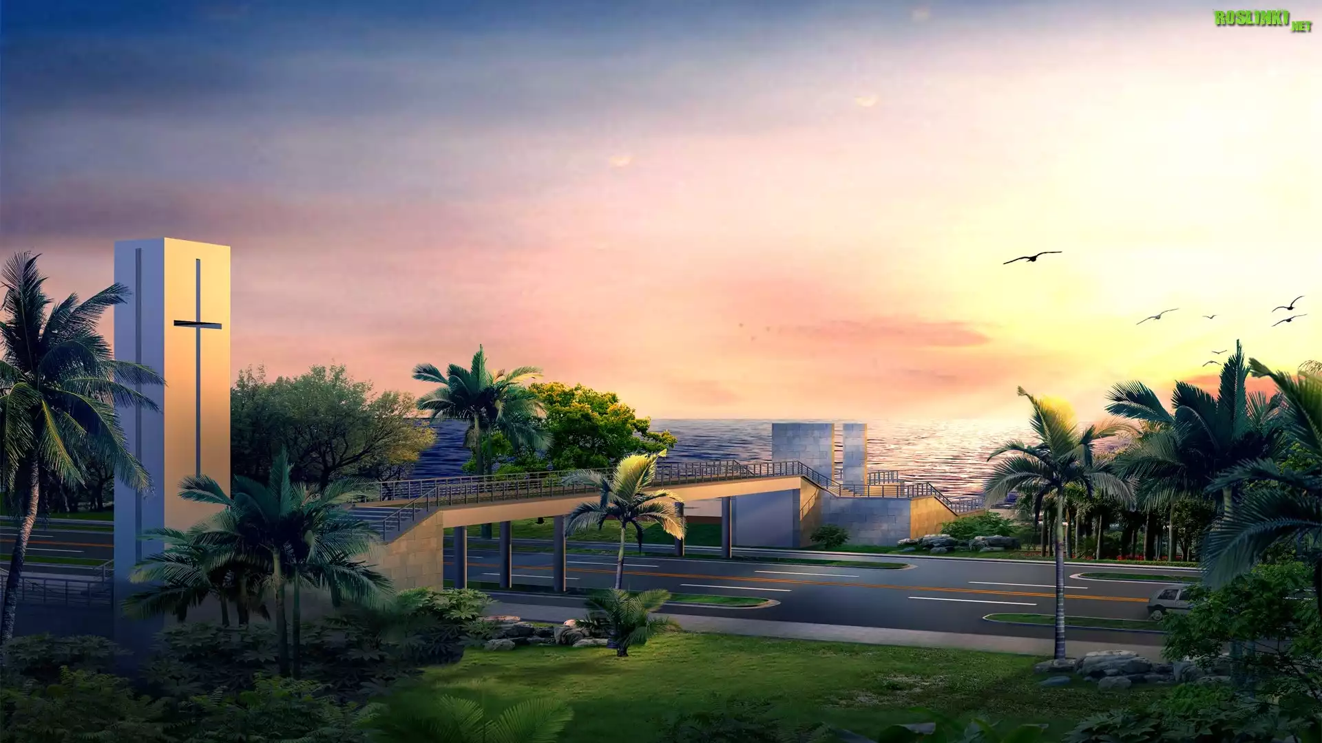 Rośliny: Wiadukt, Autostrada, Palmy