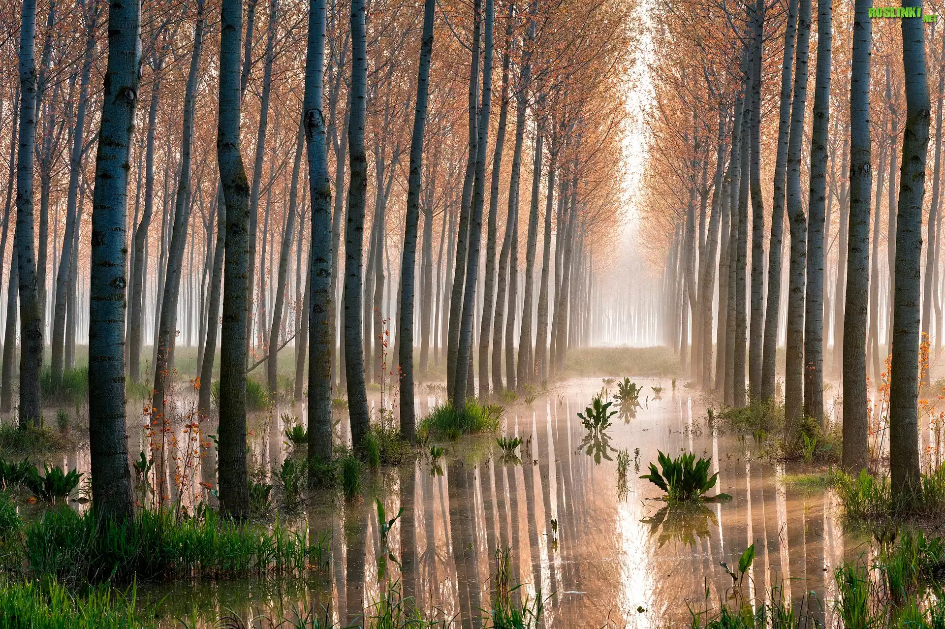 Rośliny: Bagna, Mokradła, Mgła, Drzewa