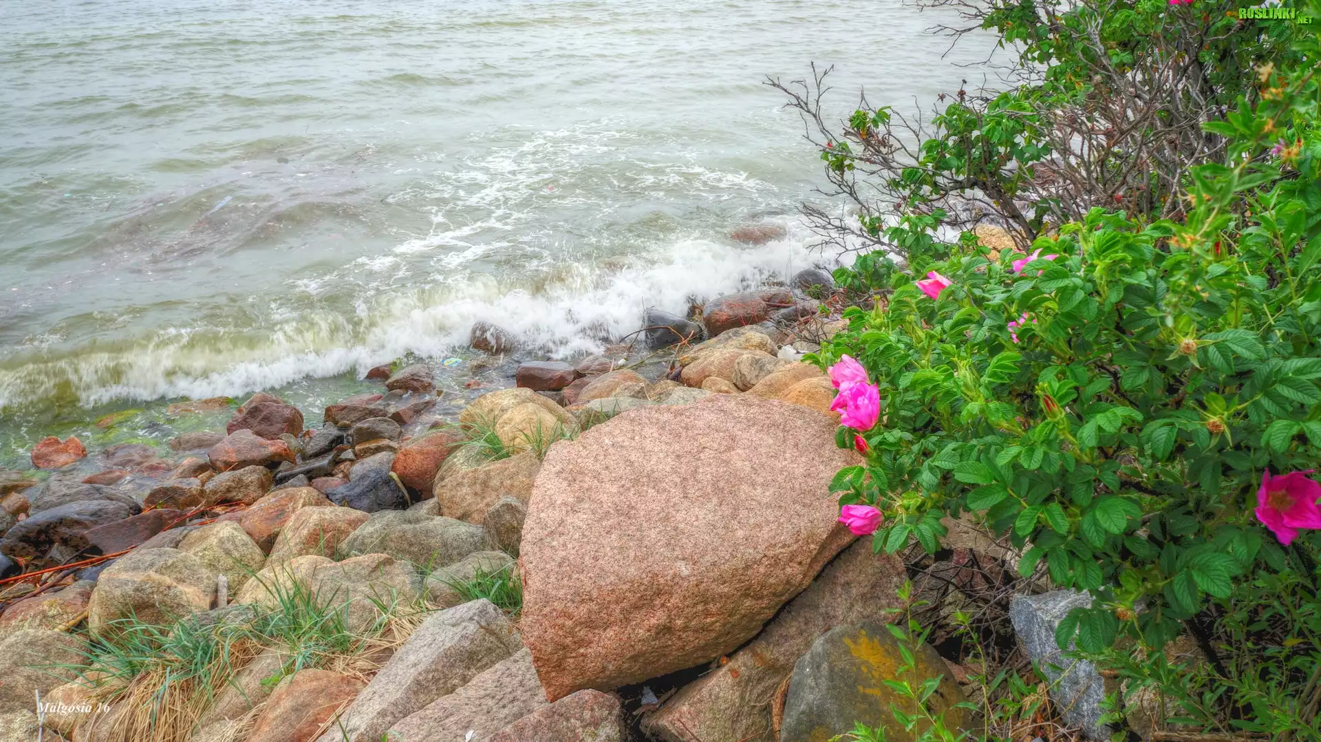 Rośliny: Morze, Bałtyk, Woda, Fale, Kamienie, Rośliny, Dzika Róża