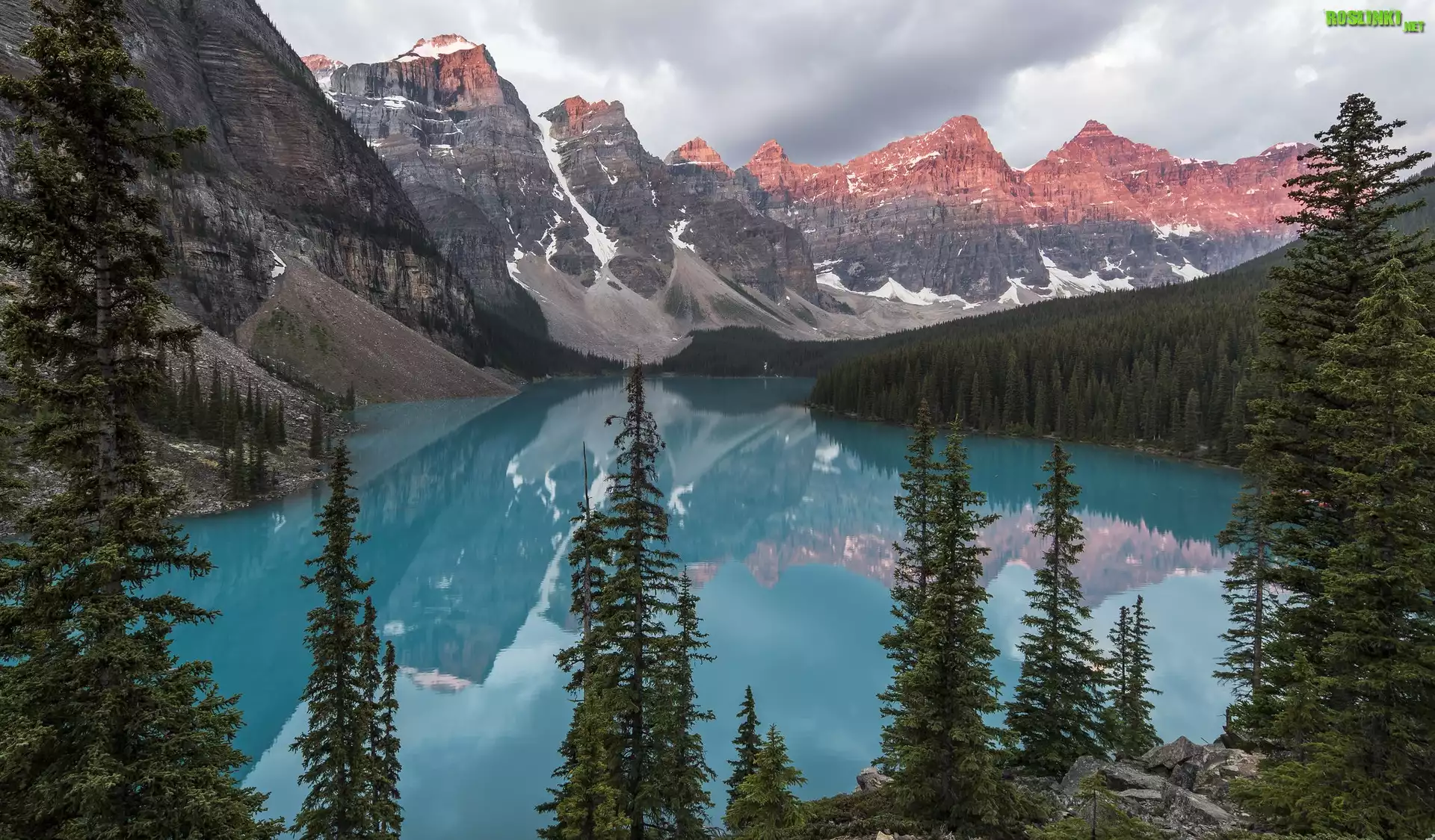Rośliny: Park Narodowy Banff, Kanada, Prowincja Alberta, Jezioro Moraine, Drzewa, Świerki, Góry