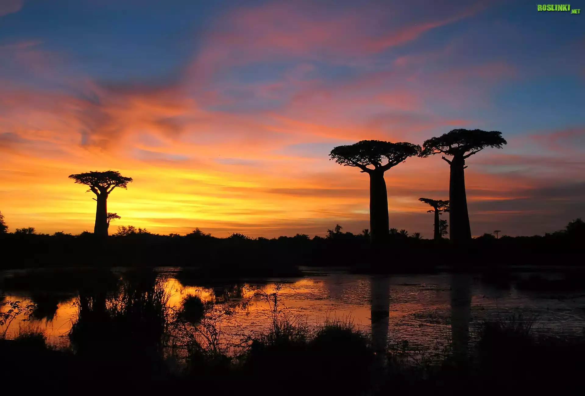 Rośliny: Baobab, Jezioro, Zachód Słońca