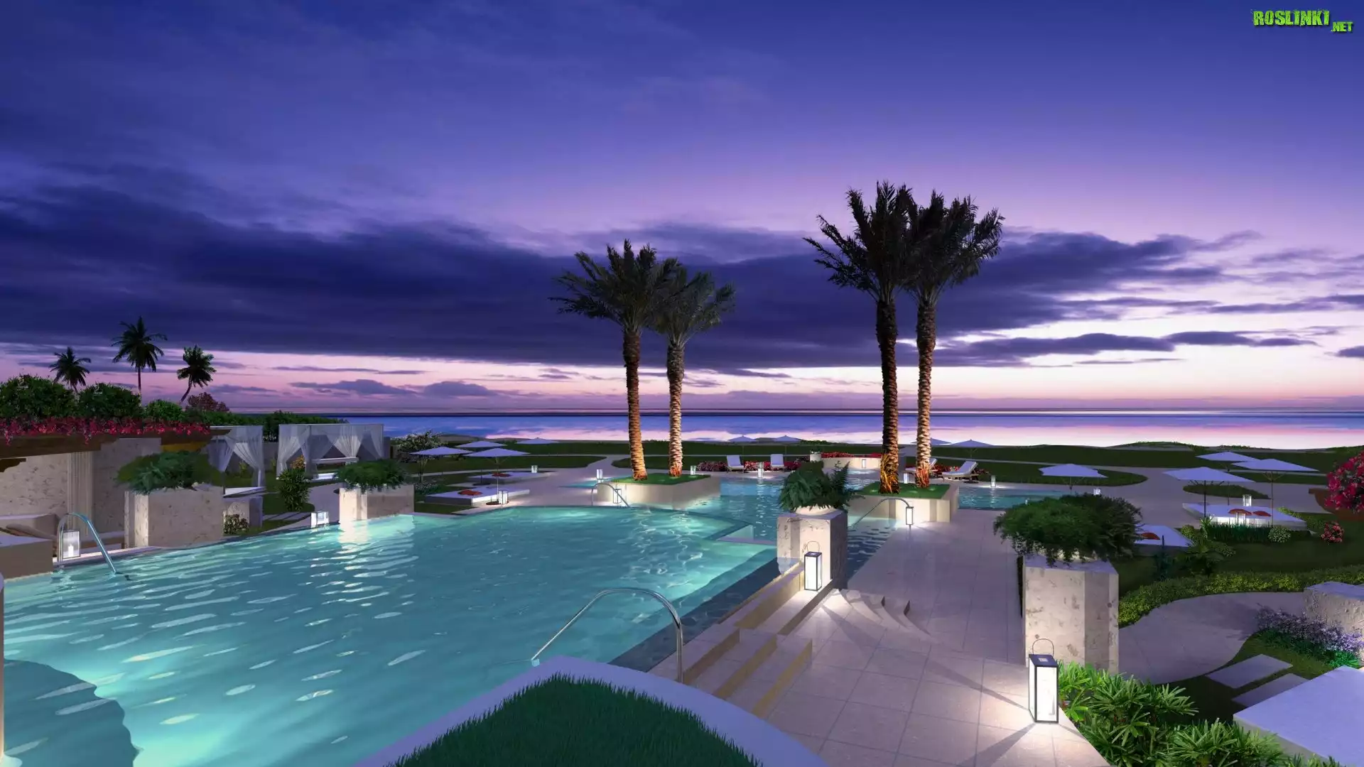 Rośliny: Morze, Basen, Palmy