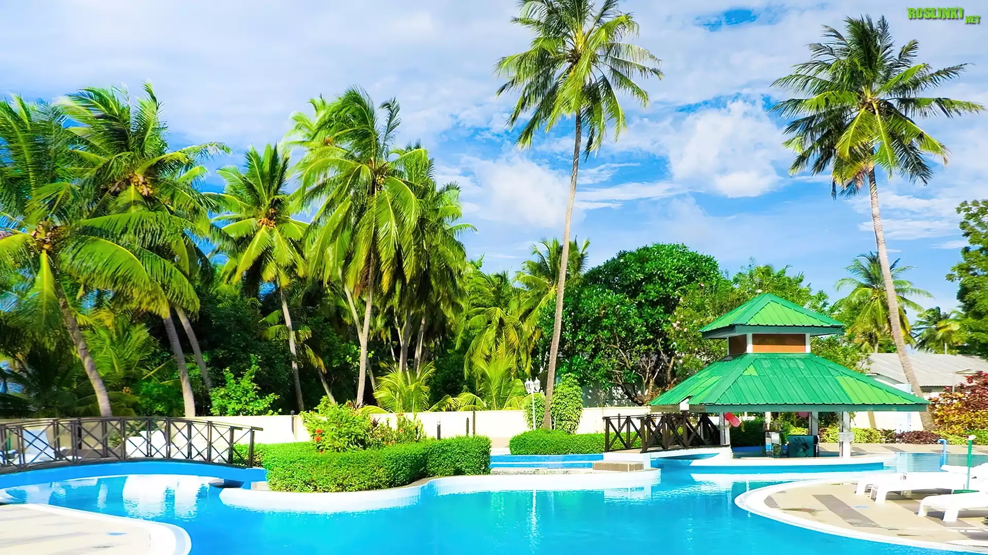 Rośliny: Basen, Altanka, Palmy, Lato, Wakacje