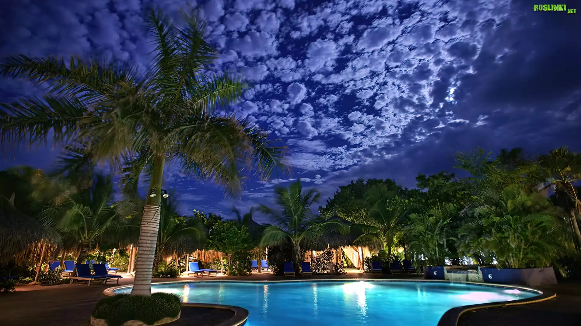 Rośliny: Wieczór, Basen, Palmy