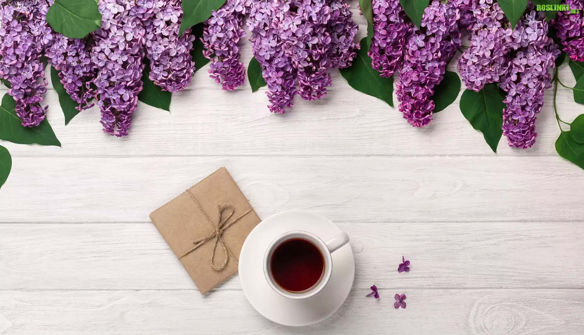 Rośliny: Kwiaty, Bez, Biała, Filiżanka, Kawa, Prezent, Deski