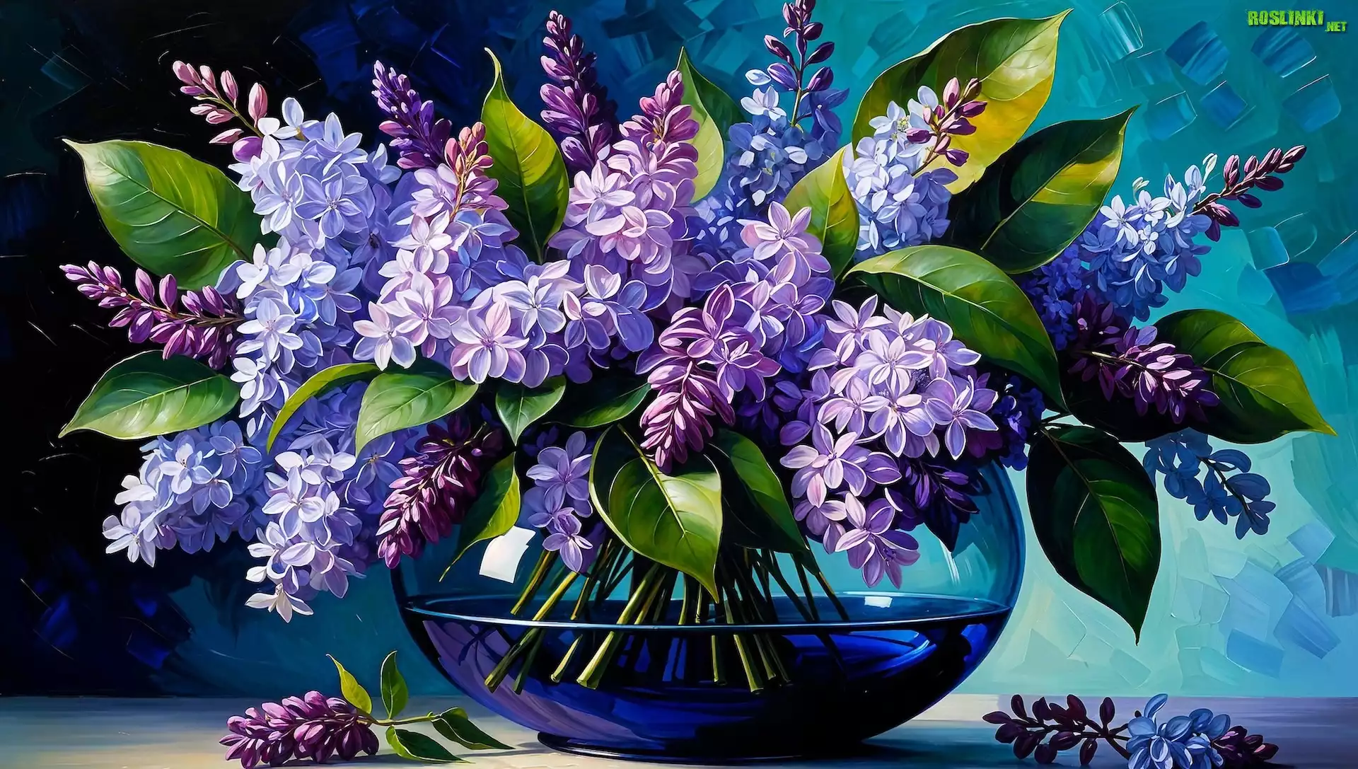 Rośliny: Fioletowy, Bez, Szklany, Wazon, Grafika