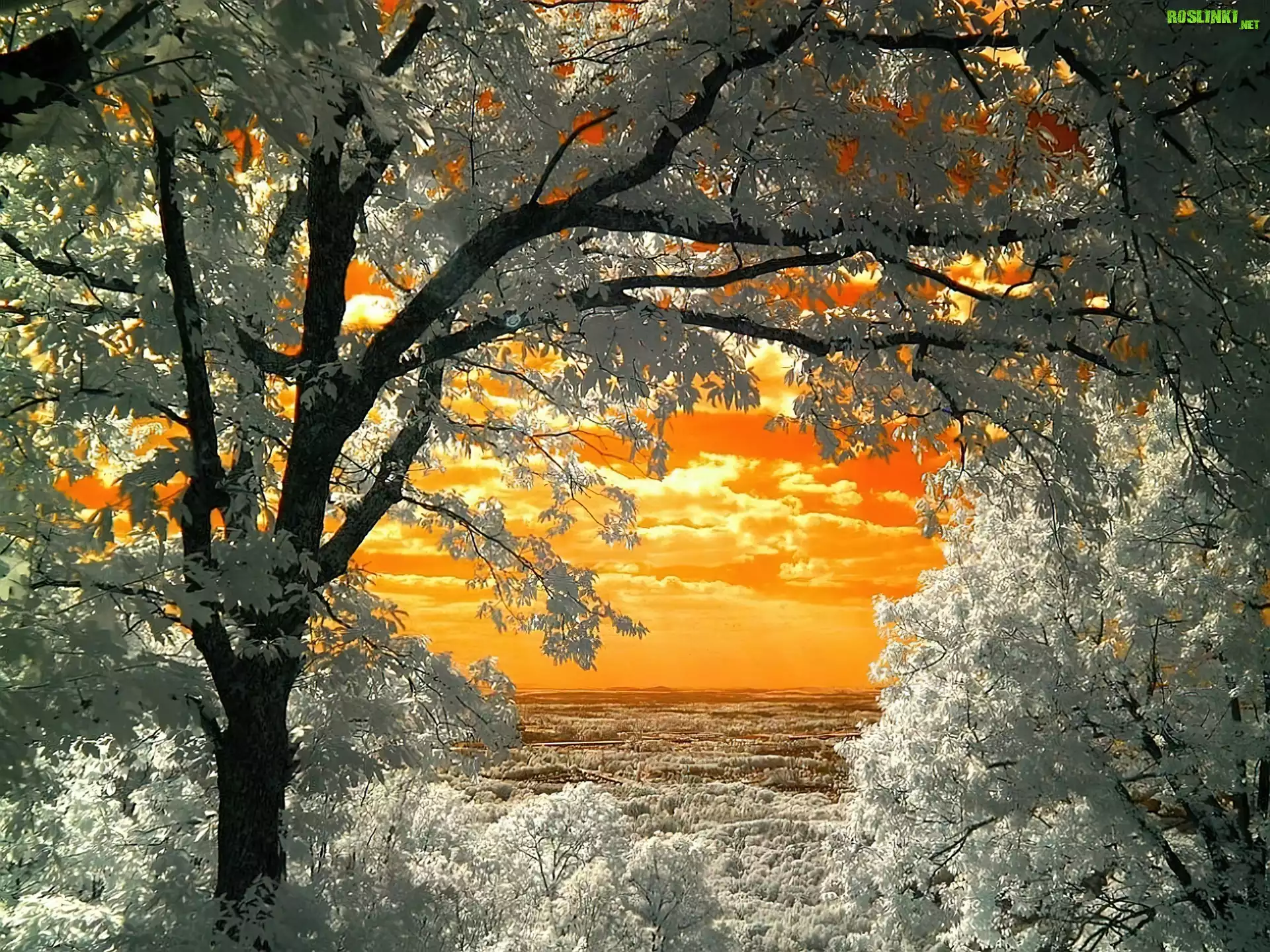 Rośliny: Białe, Drzewa, Chmury, Niebo