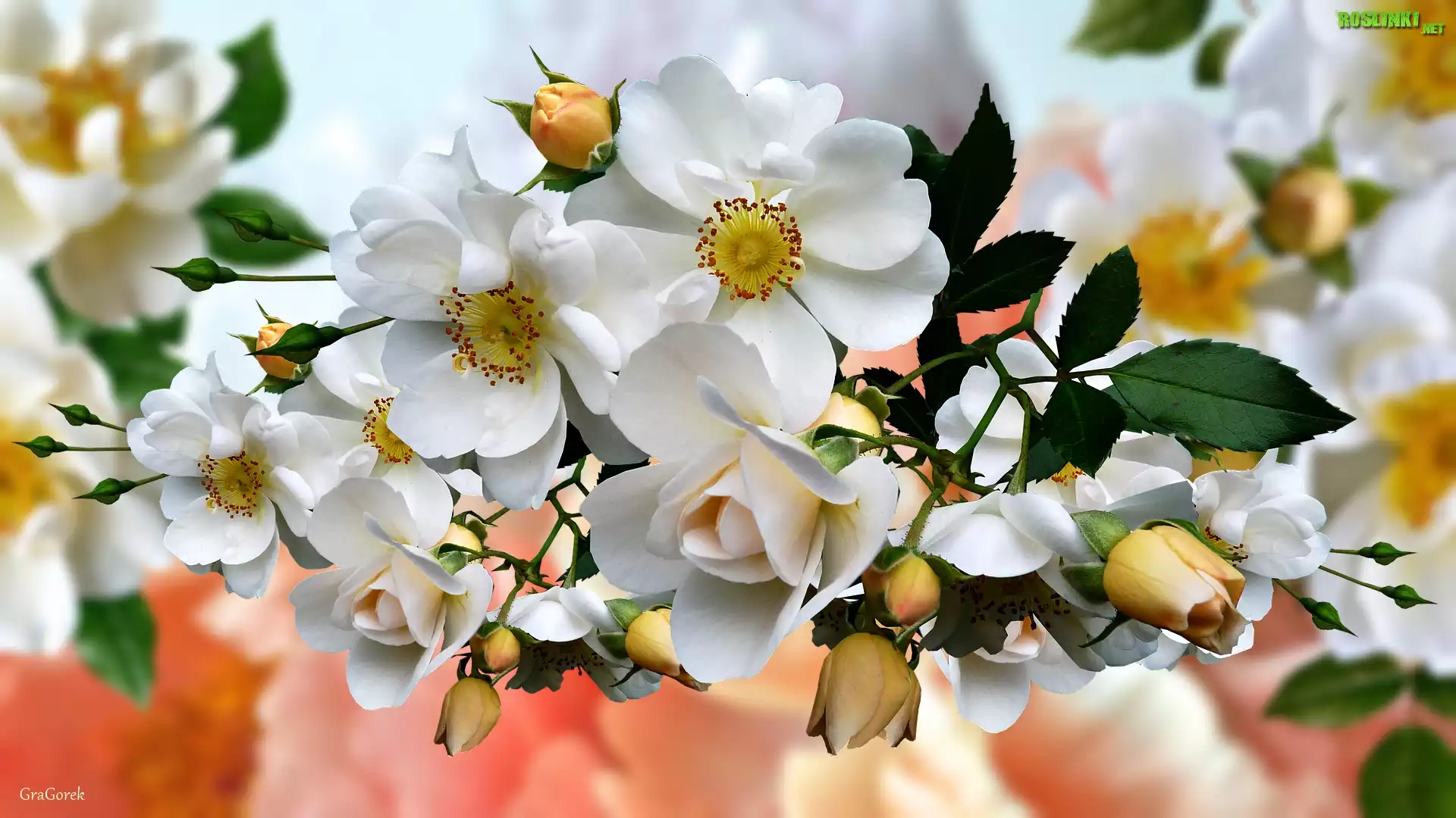 Rośliny: Białe, Kwiaty, Dzika róża, Grafika 2D