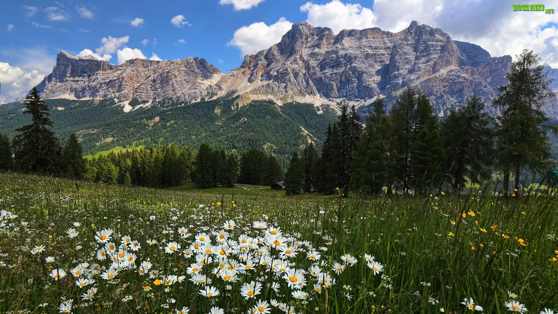 Rośliny: Góry, Dolomity, Łąka, Białe, Kwiaty, Drzewa, Włochy