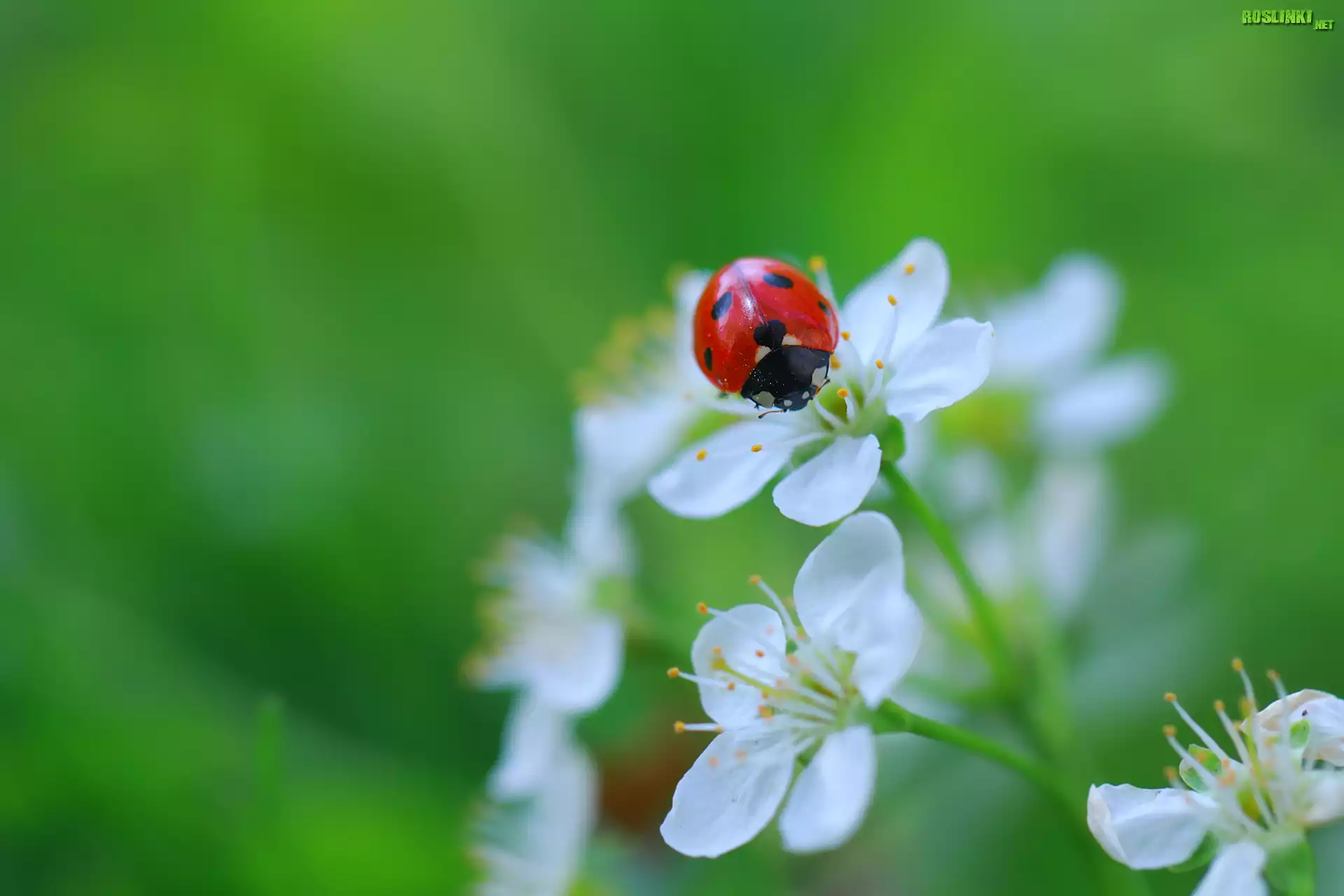 Rośliny: Białe, Kwiaty, Drzewo, Owocowe, Biedronka