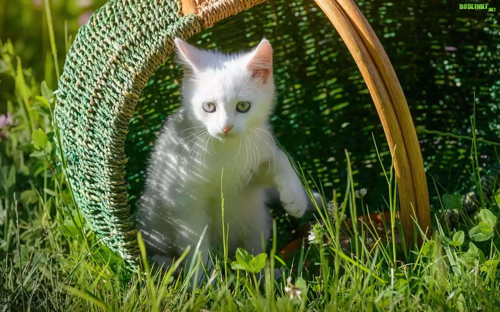 Biały, Kotek, Koszyk, Łąka, Trawa