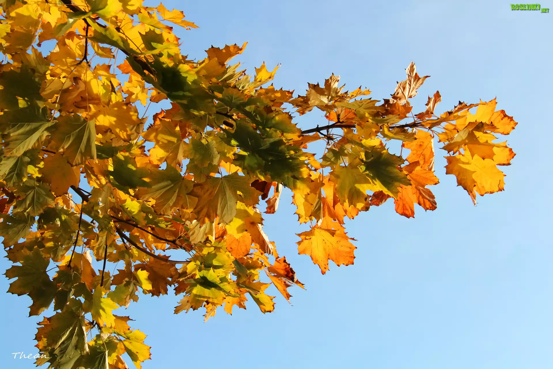 Rośliny: Żółte, Jesienne, Liście, Błękitne, Niebo