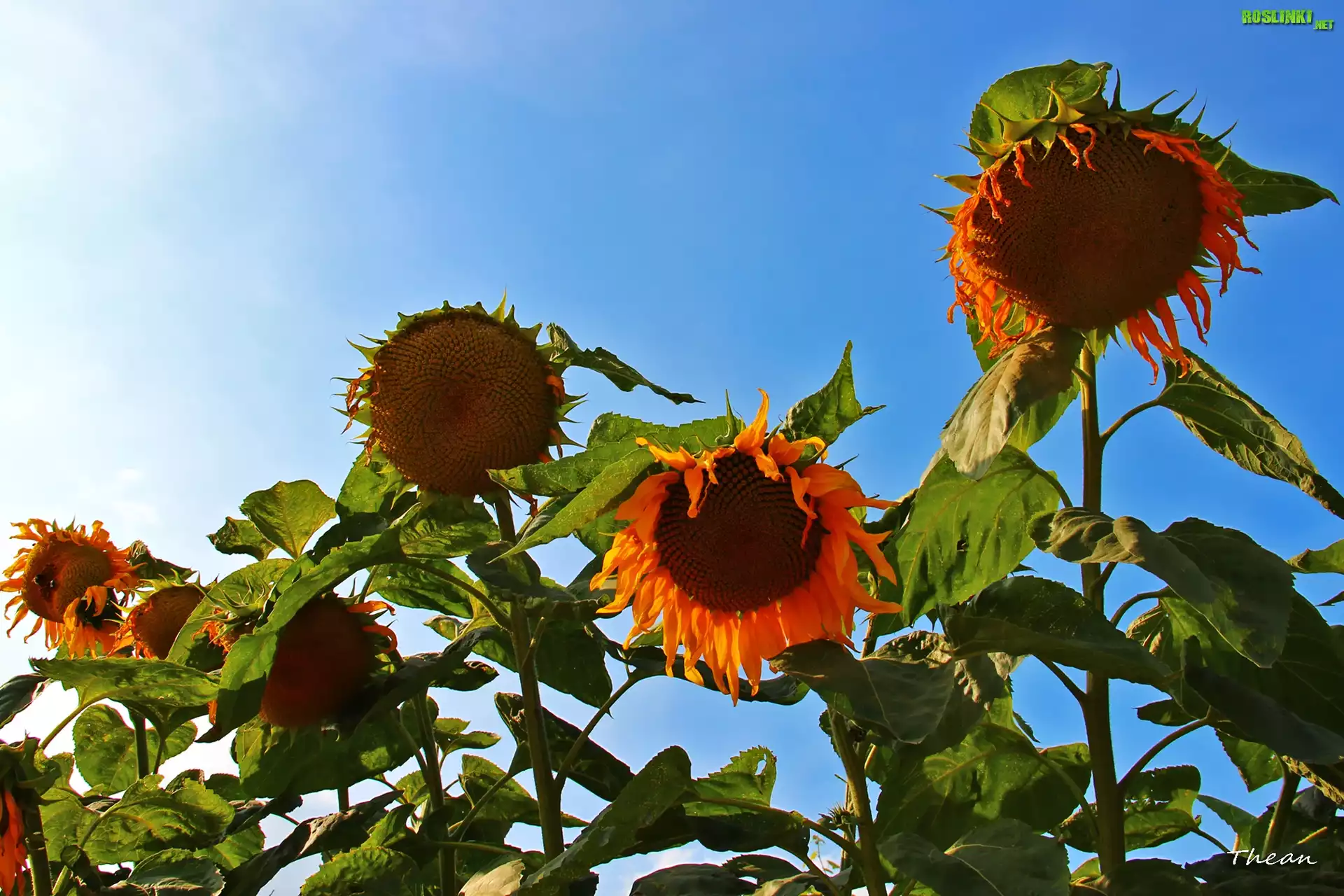 Rośliny: Słoneczniki, Błękitne, Niebo