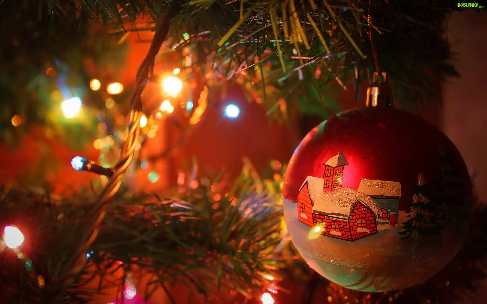 Rośliny: Świąteczna, Kompozycja, Choinka, Bombka, Oświetlenie