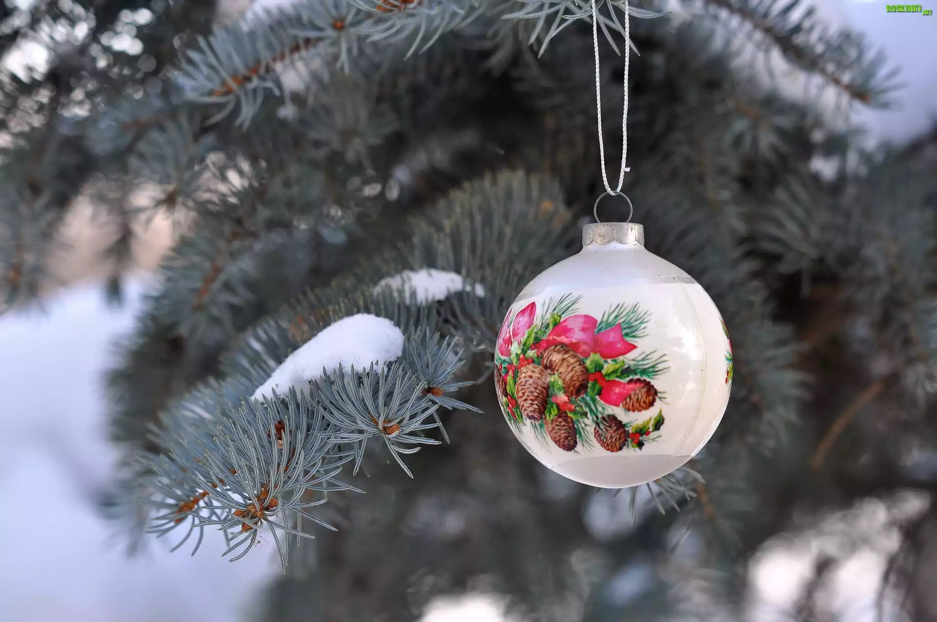 Rośliny: Świerk, Ozdobna, Bombka, Zima