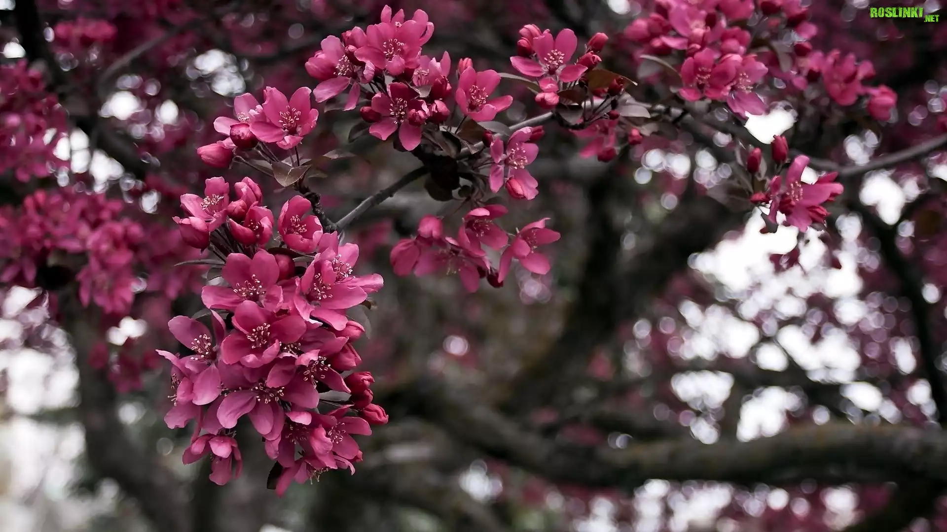 Rośliny: Bordowe, Kwiaty, Gałęzie, Drzewo