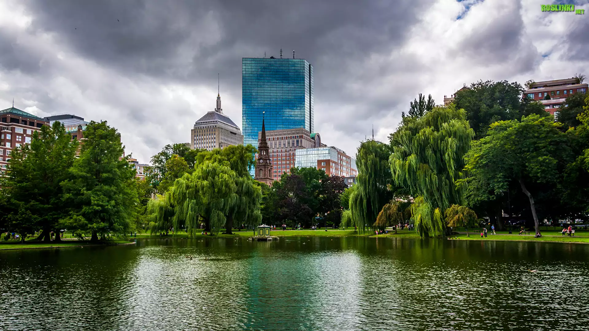 Rośliny: Stany Zjednoczone, Miasto, Boston, Staw, Drzewa, Domy