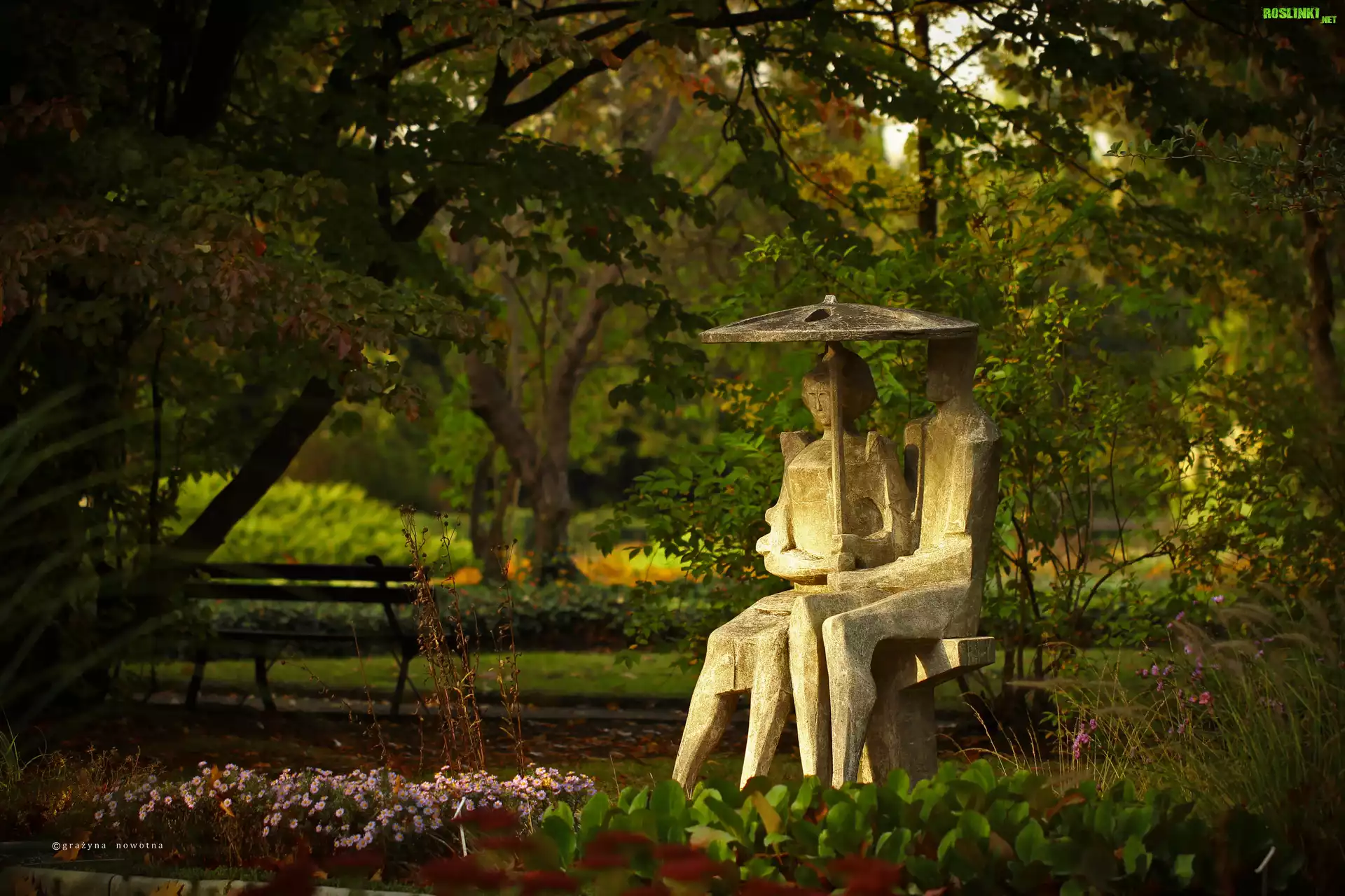 Ogród Botaniczny, Poznań, Rzeźba, Kamienna, Para, Pod, Parasolem