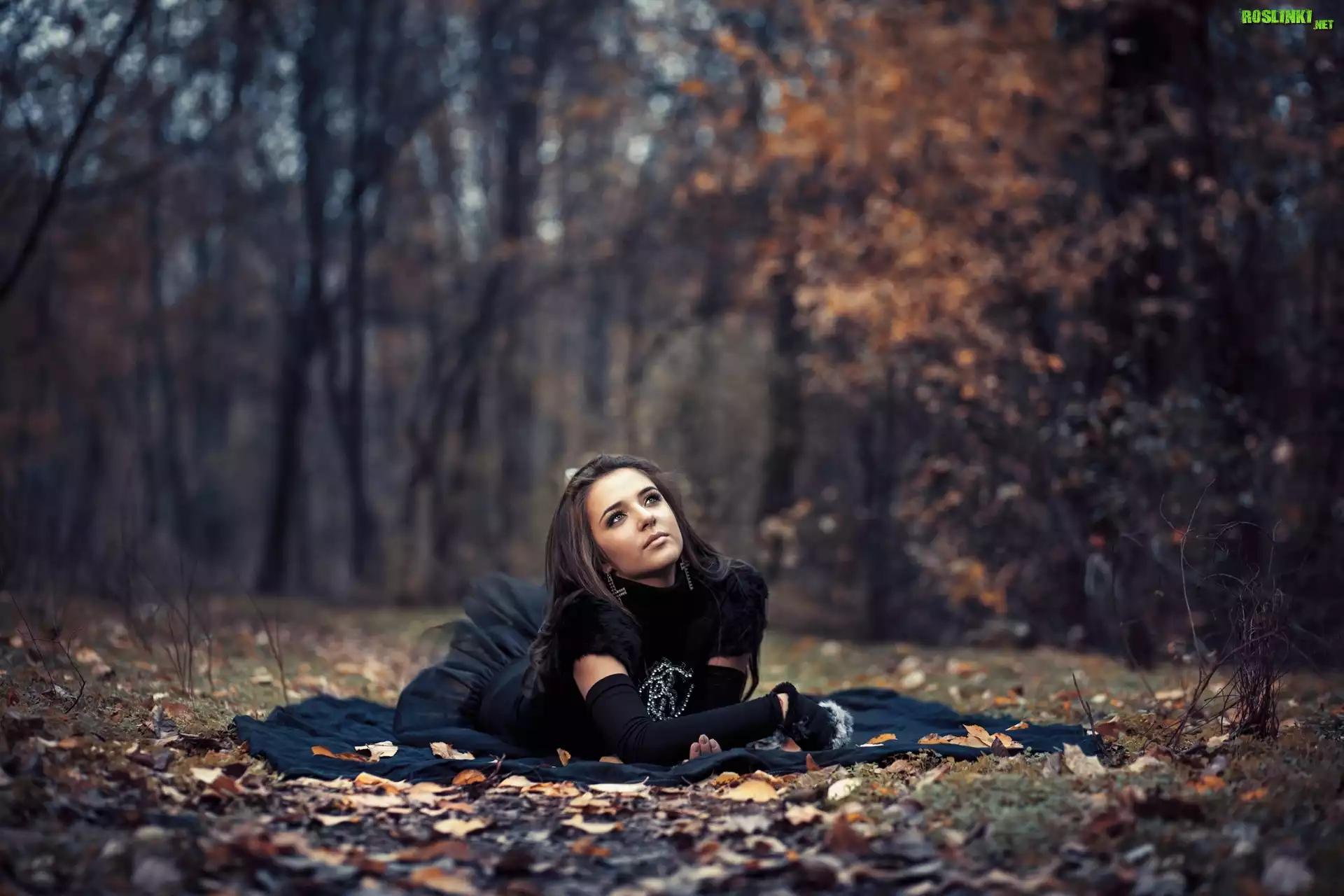 Brunetka, Modelka, Park, Liście