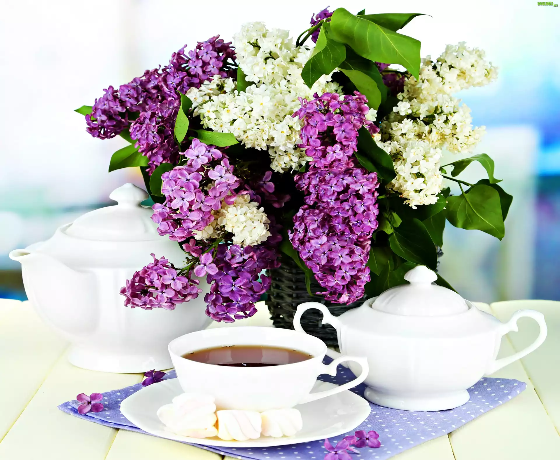 Rośliny: Bukiet, Bzu, Herbata, Porcelana