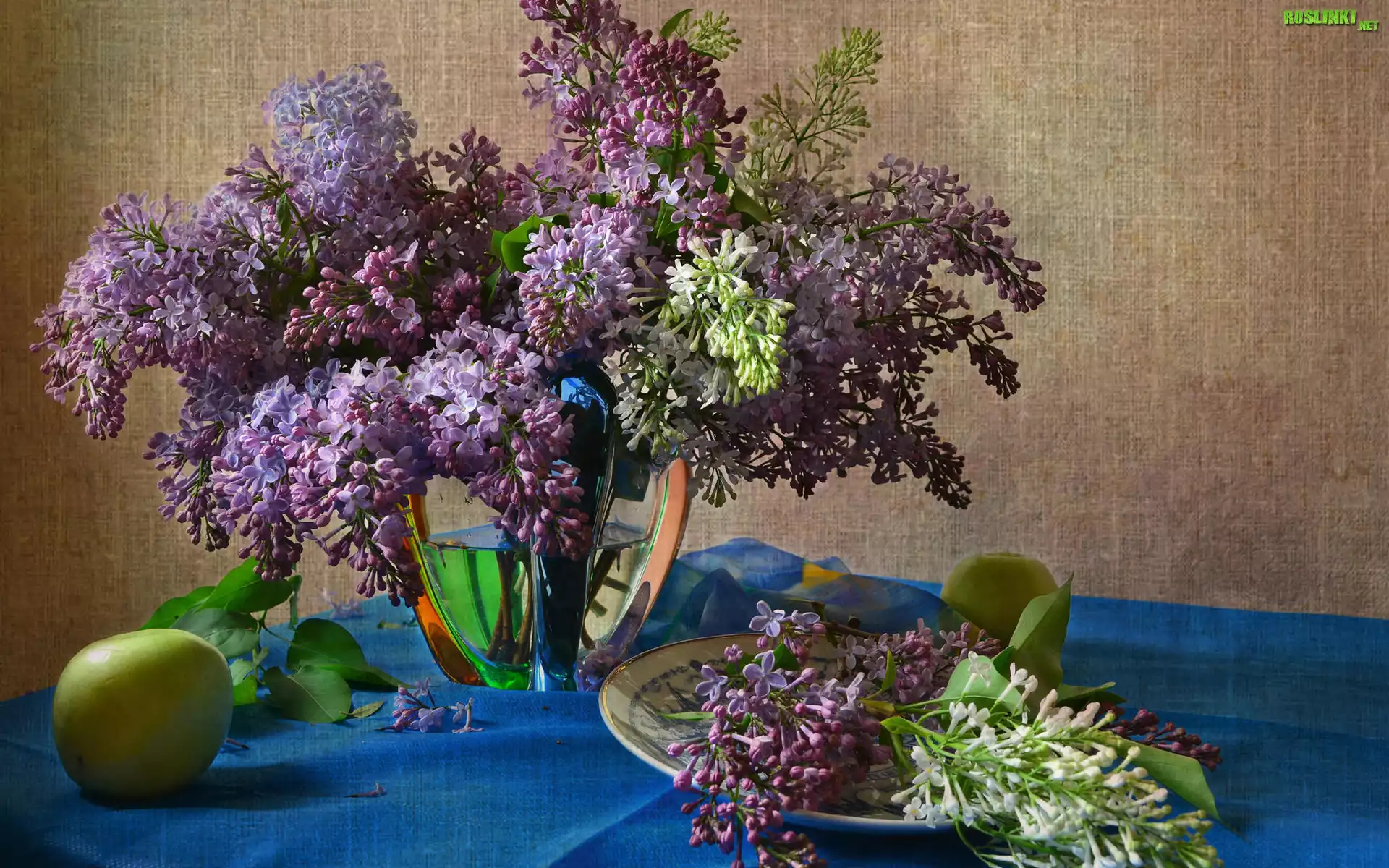 Rośliny: Bukiet, Bez, Wazon, Talerzyk, Jabłko