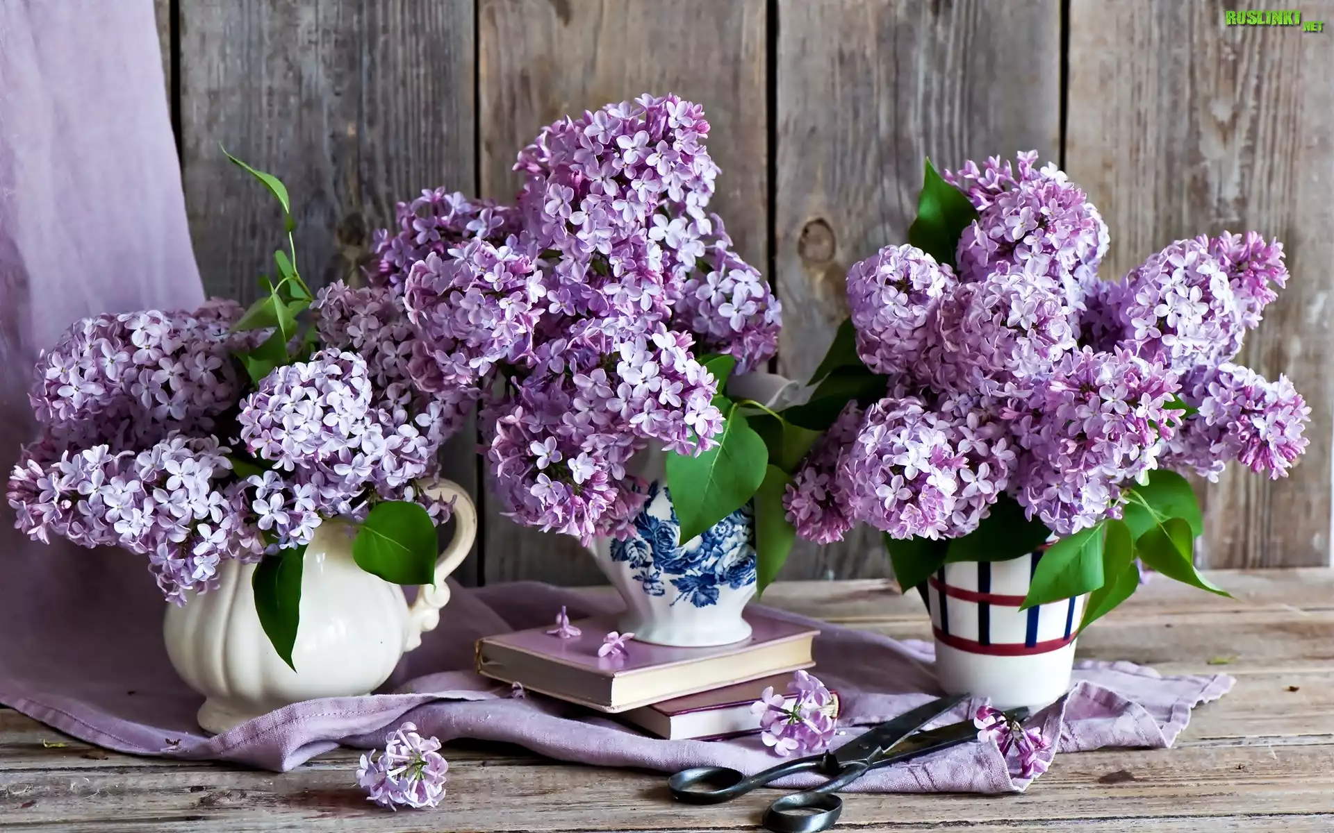 Rośliny: Bukiety, Kwiatów, Bzy, Książki, Nożyce
