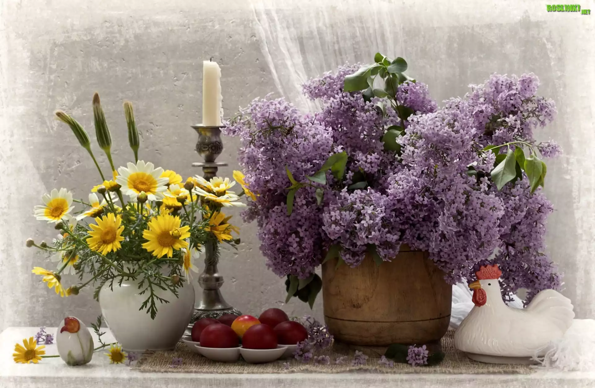 Rośliny: Bukiety, Kwiatów, Świecznik, Okno, Kompozycja