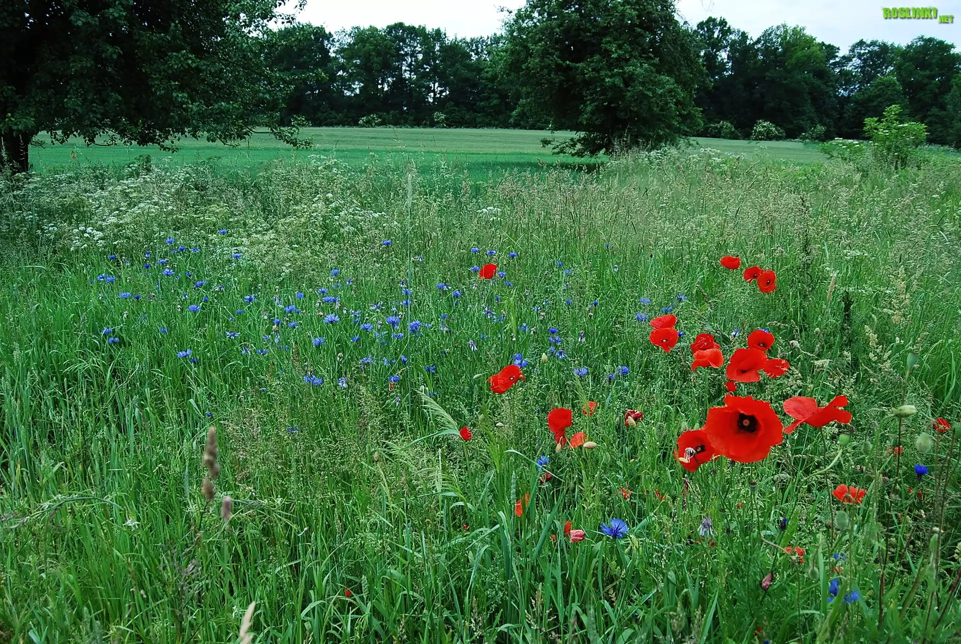 Rośliny: Łąka, Maki, Chabry, Drzewa